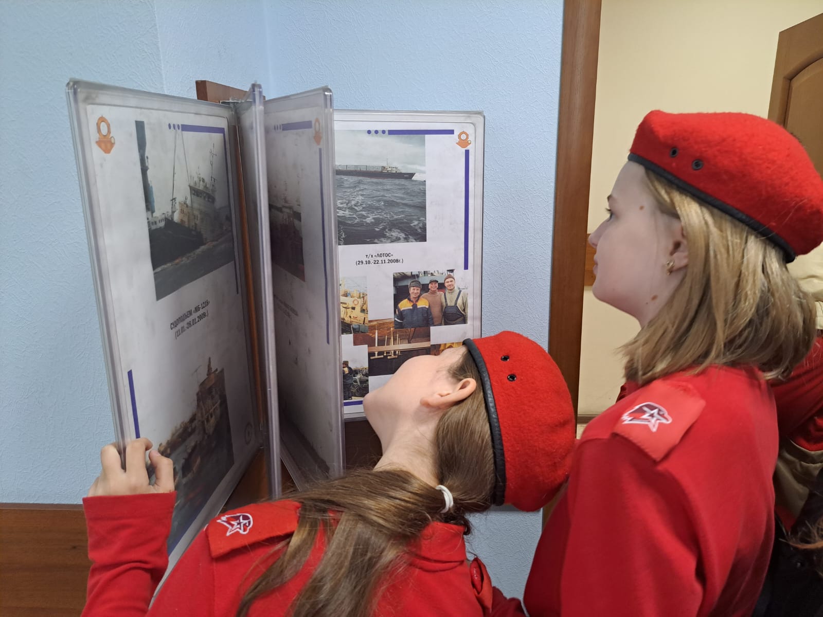 Евгений Александрович рассказал школьникам о славных страницах истории учреждения, об участии в различных аварийно-спасательных операциях, о легендарных личностях и о вкладе Морспасслужбы в развитие морского аварийно-спасательного дела России.