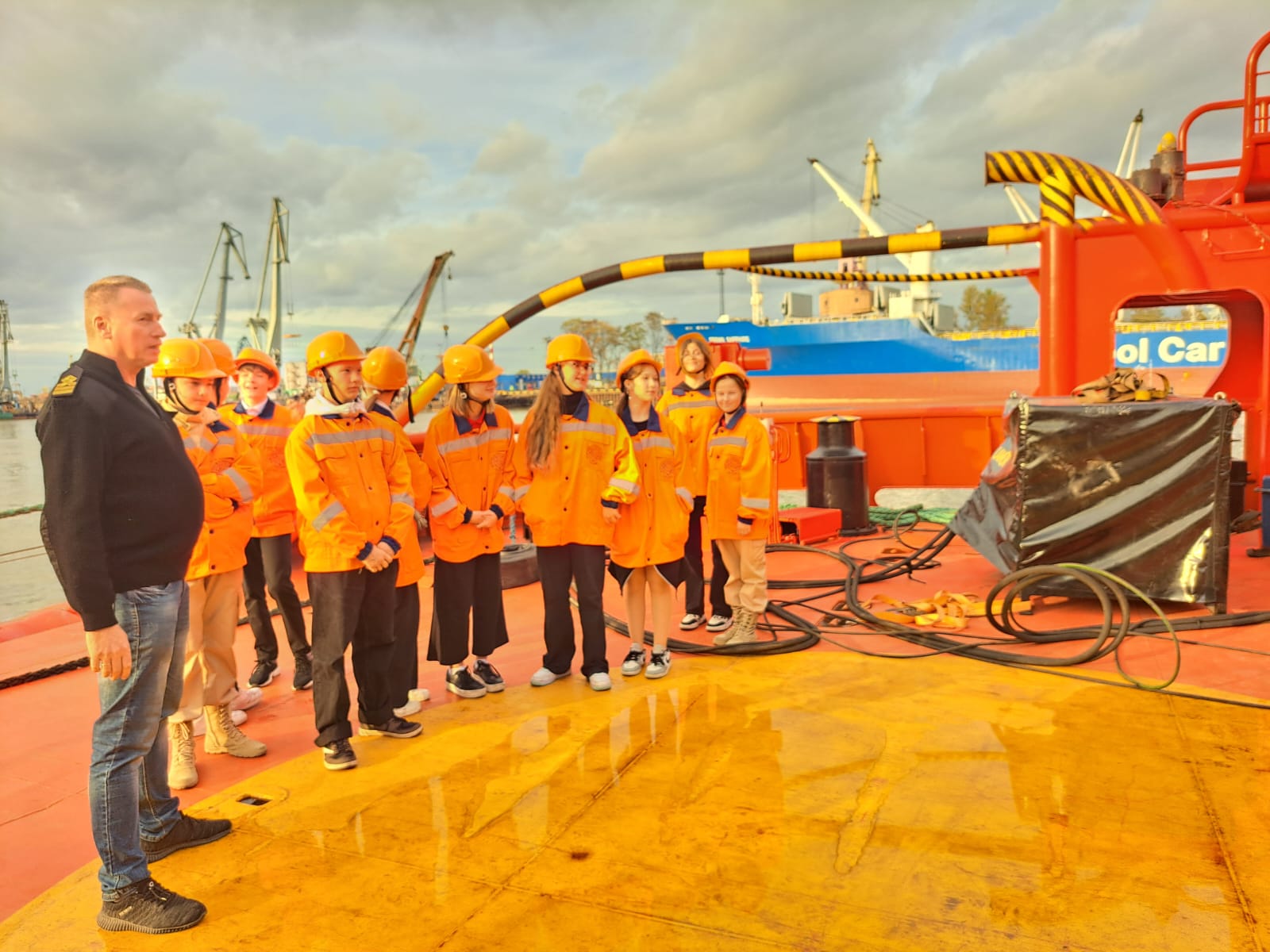 В начале встречи морские спасатели провели тщательный инструктаж в группах экскурсантов о мерах безопасности и правилах нахождения на технических объектах и судах. Всем ученикам была выдана униформа Балтийского филиала и средства индивидуальной защиты.