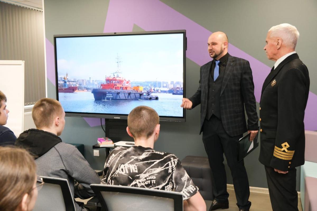 Спикерами выступили начальник отдела главного инженера Александр Викторович Карамышев и инженер аварийно-спасательного отдела Евгений Александрович Морозов. Они рассказали о востребованных профессиях в Морской спасательной службе и важности выбора карьеры в этой динамичной и ответственной сфере, которая предлагает значительные возможности для профессионального роста.