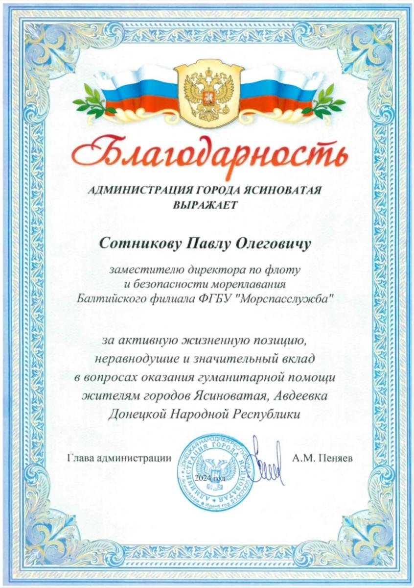 Благодарственные письма за содействие в организации сбора гуманитарной помощи от судоходных компаний Санкт-Петербурга поступили на имя директора Балтийского филиала Андрея Серикова и заместителя директора по флоту и безопасности мореплавания Павла Сотникова.