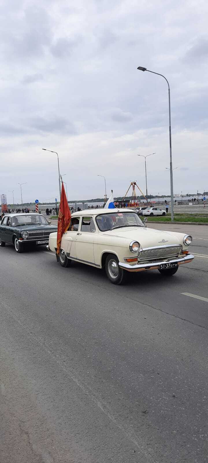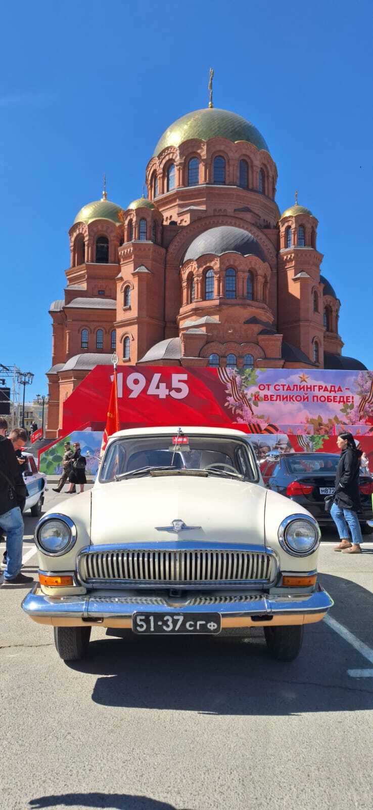 Перед началом движения колонны участники прошли пешком к Вечному огню у музея Победы, чтобы возложить цветы в память о павших героях в годы Великой Отечественной войны. Автомобили участников были украшены символикой 80-летия Великой Победы.