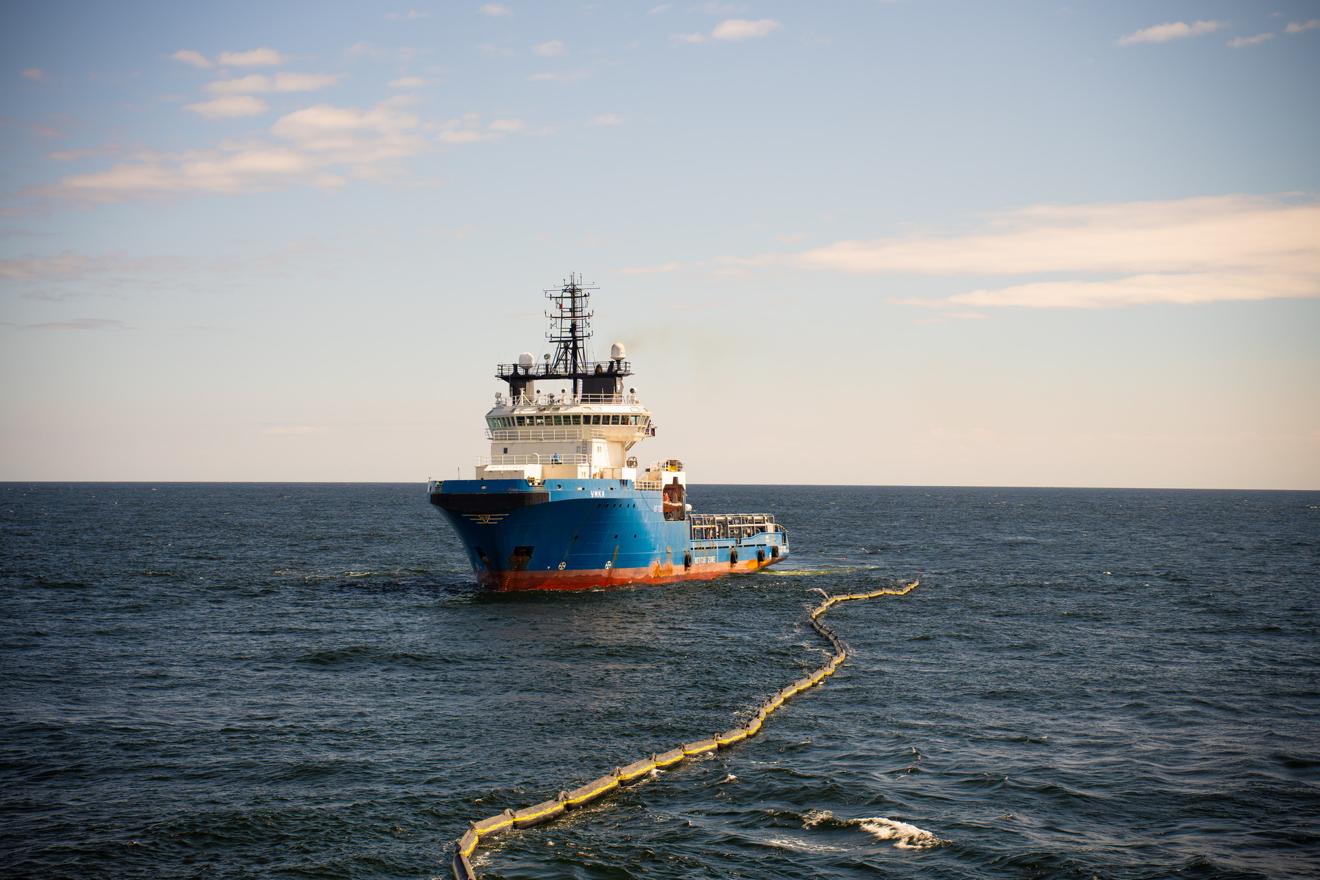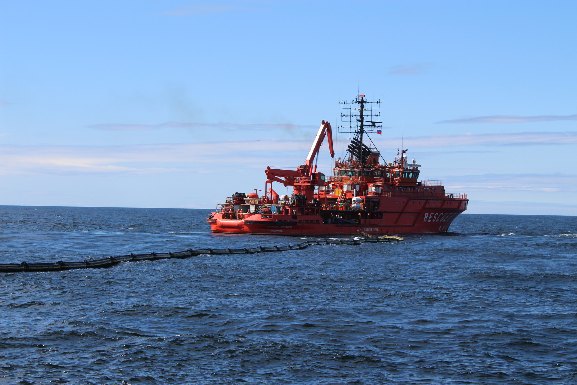 В рамках комплексных учений отрабатывались действия по ликвидации крупного разлива нефтепродуктов, который по сценарию тренировки произошел из-за разгерметизации топливного танка после сейсмических толчков на полупогружной плавучей буровой установке «Полярная звезда». После получения сигнала силы профессионального аварийно-спасательного формирования ФГБУ «Морспасслужба» на многофункциональном судне «Спасатель Заборщиков» оперативно приступили к локализации пятна с помощью J-образного бонового заграждения. Спасатели провели сбор нефтеводяной смеси скиммерными системами и последующую доочистку акватории, а также передачу отходов на транспортно-буксирное судно «Умка» для дальнейшей утилизации. Все этапы, включая оперативное оповещение, сбор органов управления и координацию взаимодействия, были выполнены в установленные сроки и в полном соответствии с планом ликвидации разливов нефти.