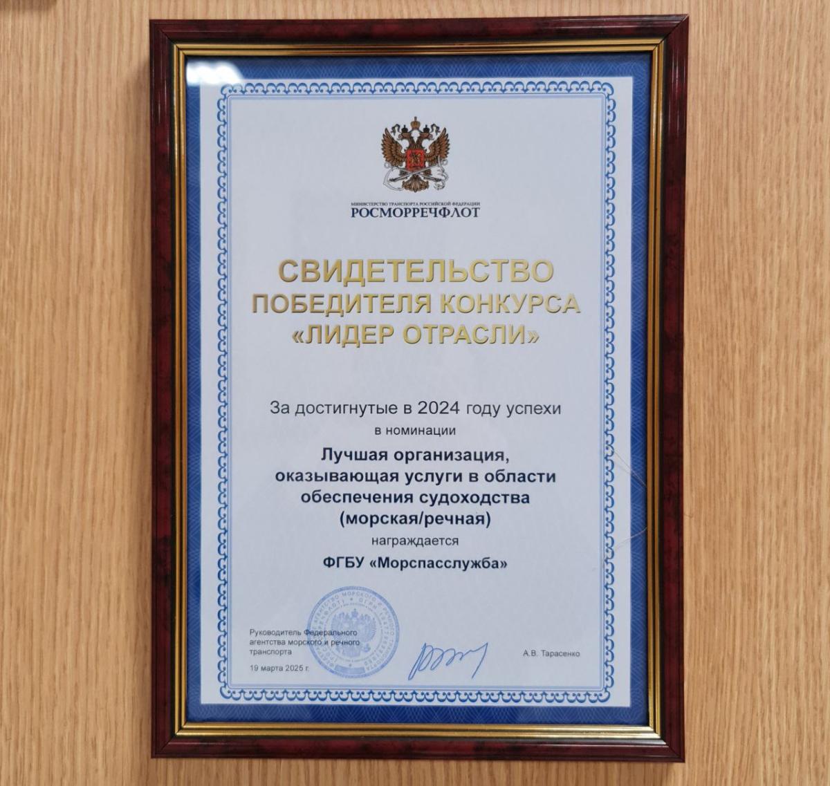 Морспасслужба в соответствии с протоколом заседания Экспертной комиссии по определению победителей ежегодного конкурса «Лидер отрасли» и по итогам деятельности в 2024 году стала победителем в номинации "Лучшая организация, оказывающая услуги в области обеспечения судоходства (морская)". Это уже седьмая награда Морспасслужбы как лидера отрасли, начиная с 2013 года.