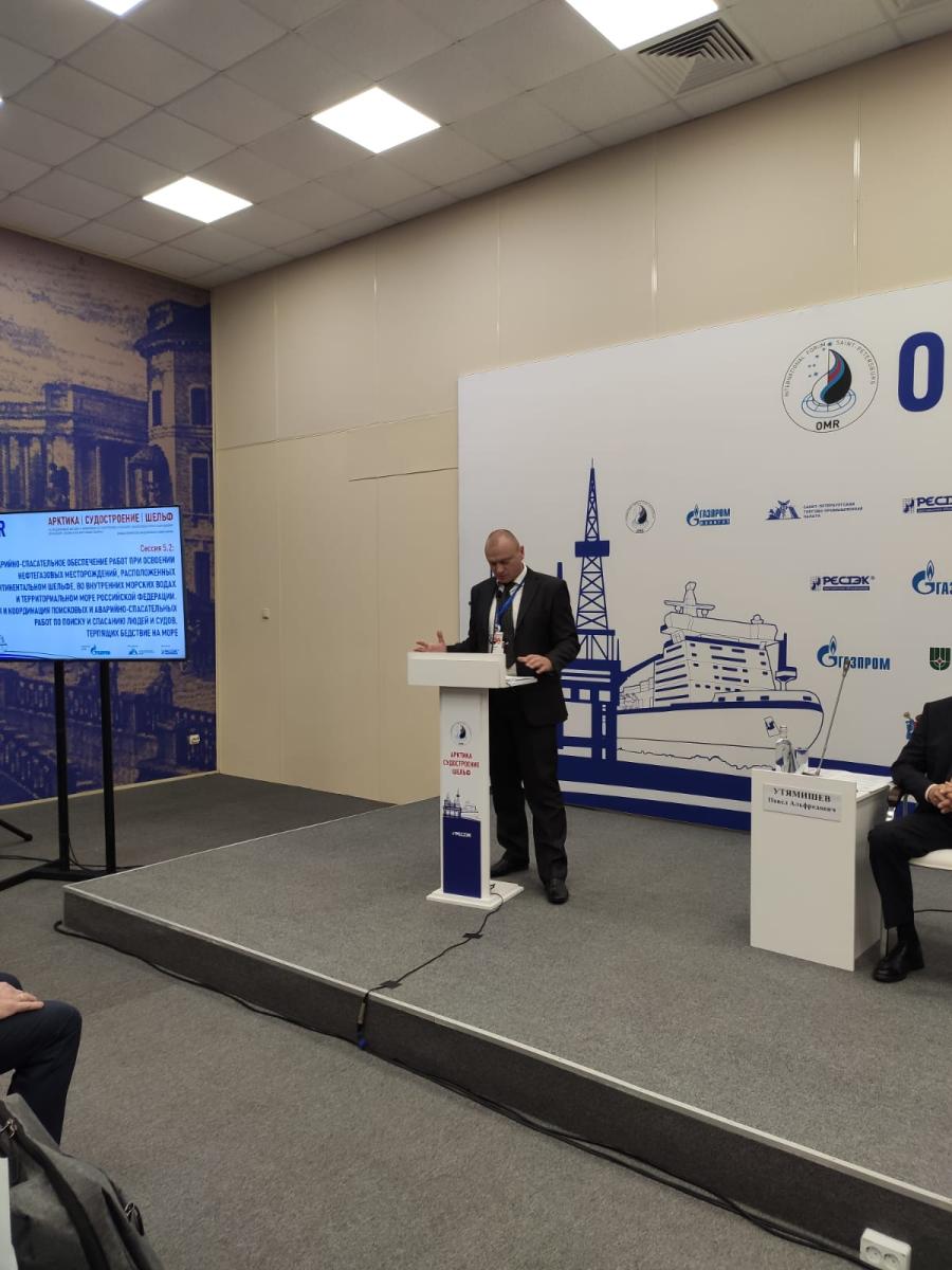 Сегодня на сессии по аварийно-спасательному обеспечению на континентальном шельфе, во внутренних морских водах и территориальном море Российской Федерации выступил заместитель начальника управления по противофонтанным и газоспасательным работам ФГБУ «Морспасслужба» Олег Юрьевич Заносов. Его выступление было посвящено современным технологиям для решения задач аварийно-спасательной готовности и ликвидации разливов нефти, а также перспективным технологиям в этой области.