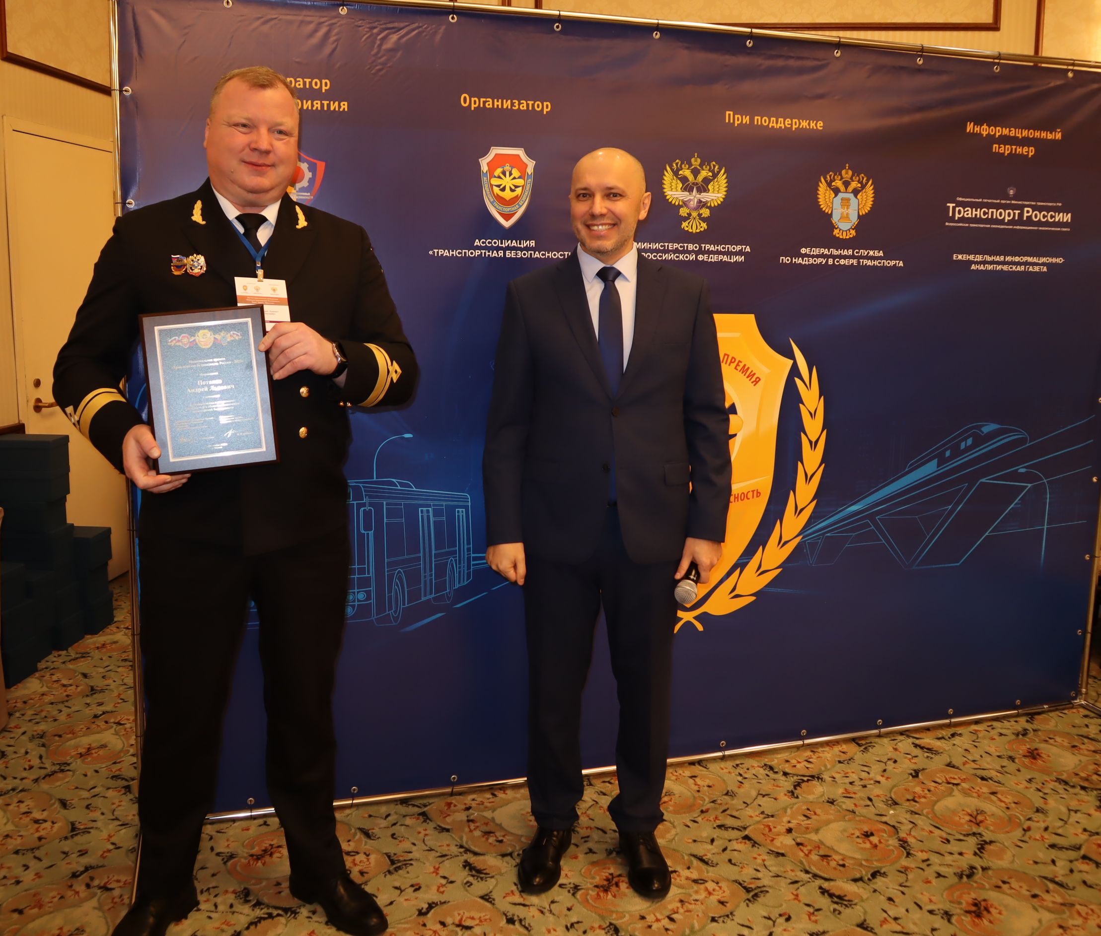 В номинации «За личный вклад в реализацию системы мер в области обеспечения транспортной безопасности» решением Экспертного совета Правления Ассоциации «Транспортная безопасность» и оргкомитета Национальной Премии «Транспортная безопасность России-2023» заместитель руководителя по флоту ФГБУ «Морская спасательная служба» Андрей Львович Потапов определен лауреатом Национальной Премии «Транспортная безопасность России-2023». На торжественной церемонии Андрей Львович награждён почётным дипломом лауреата.