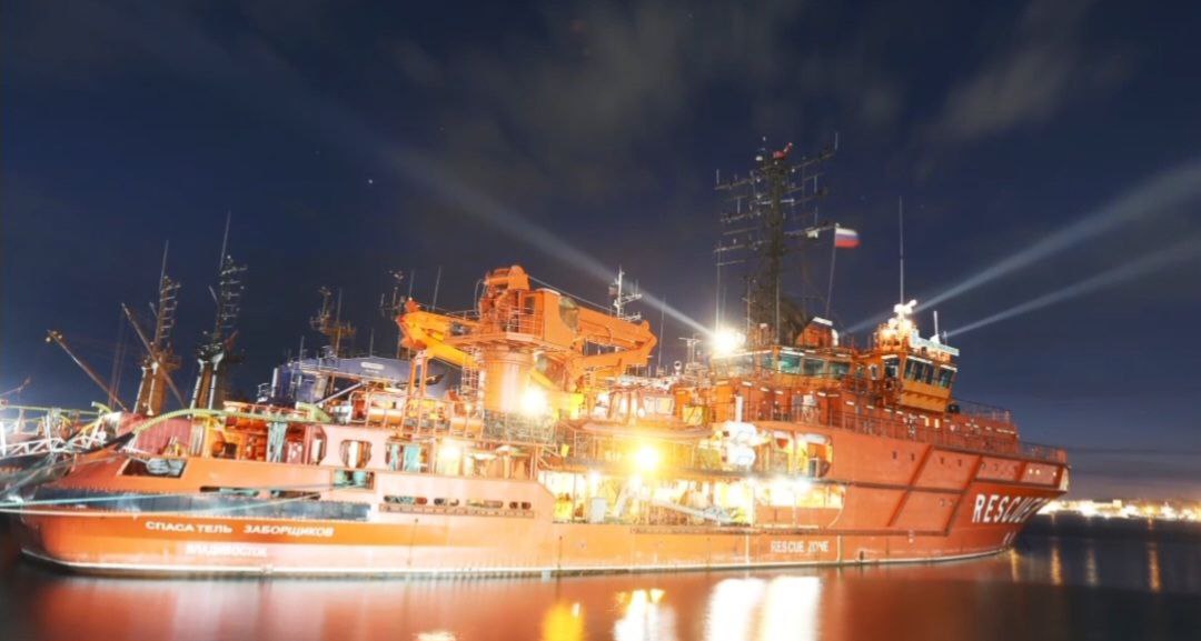 На всех судах Морспасслужбы зажглись прожекторы. Эти лучи, пронзающие ночное небо, – символ несокрушимого духа тех, кто отстоял нашу свободу и независимость.