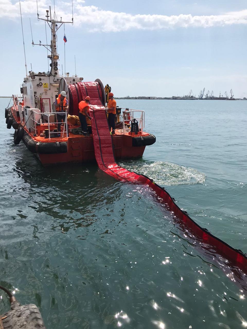 На учении подразделения Азово-Черноморского филиала Морспасслужбы отработали взаимодействие при нефтеразливе