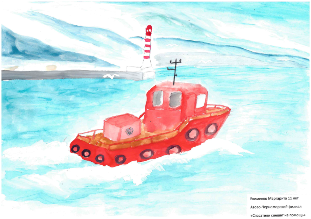 Номинация «Морской художник» - Екименко Маргарита (Азово-Черноморский филиал), 11 лет «Спасатели спешат на помощь».