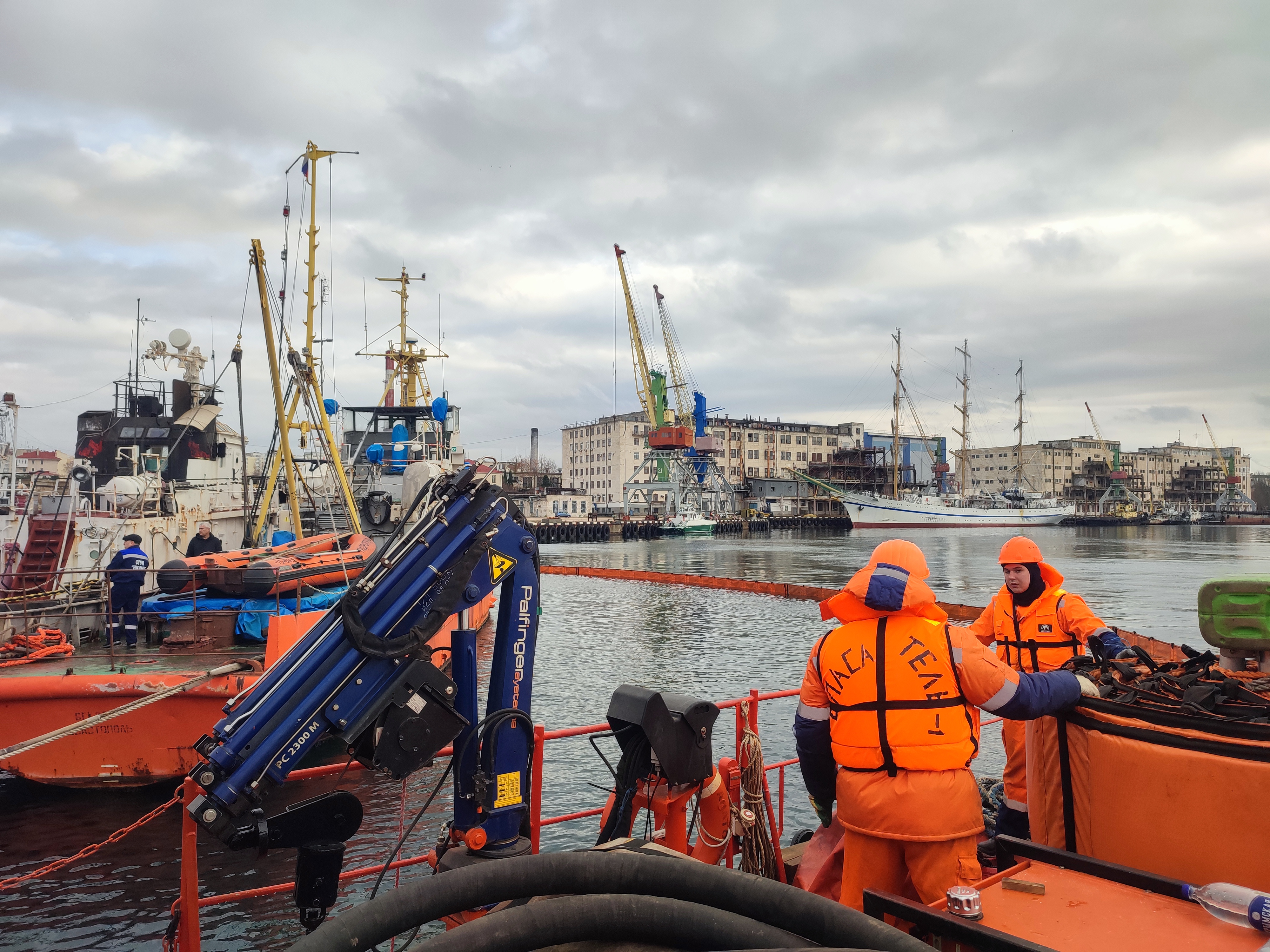 В морском порту Севастополь на учении отработана программа взаимодействия при ликвидации крупного нефтеразлива