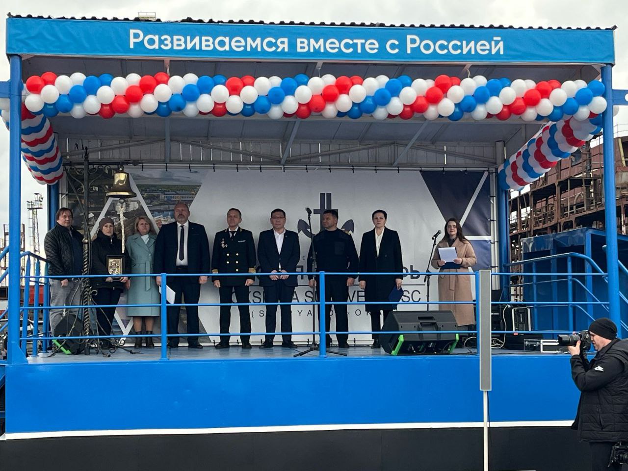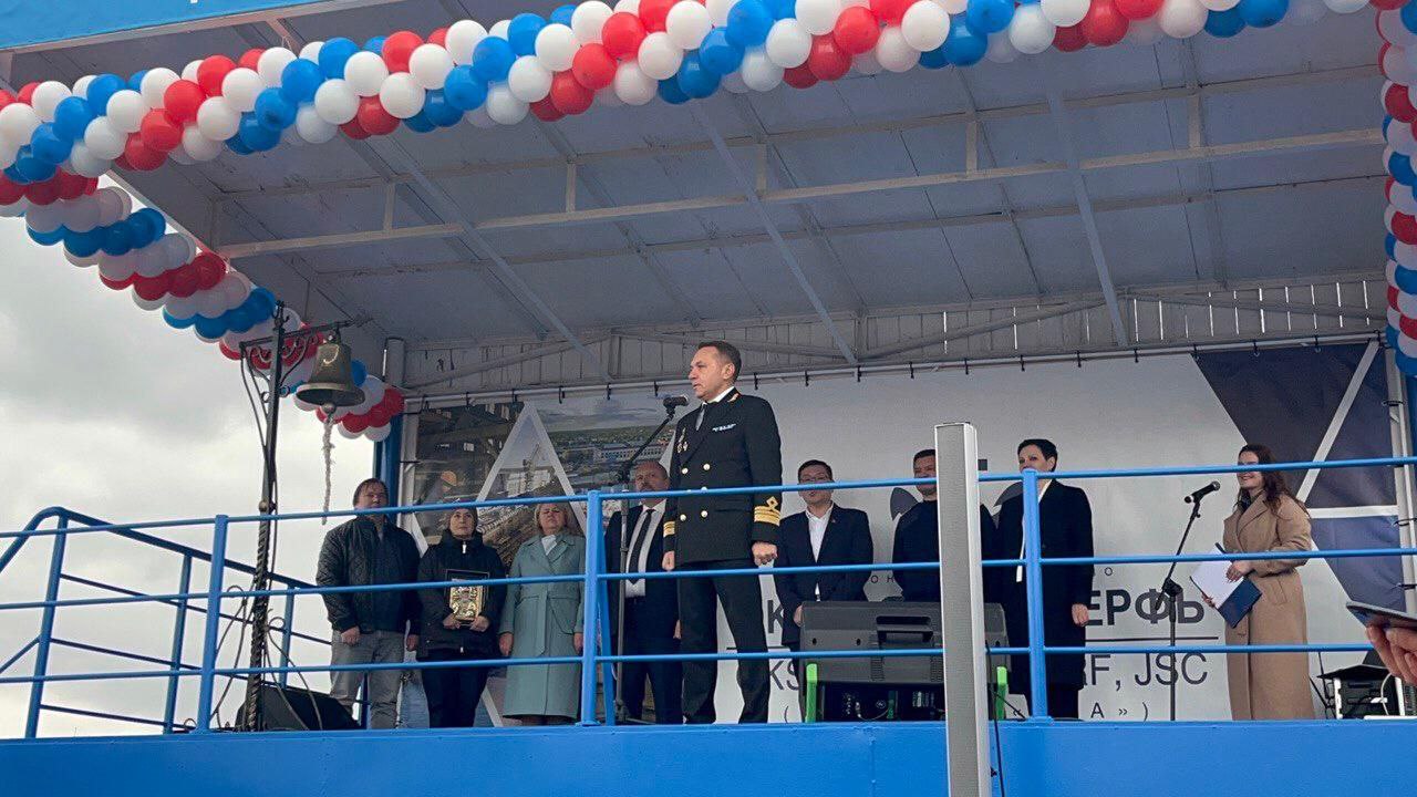 В торжественной церемонии спуска на воду нового судна приняли участие руководитель Росморречфлота Андрей Тарасенко, руководитель Морспасслужбы Виктор Чернов, исполнительный директор АО «Окская судоверфь» Светлана Васильева, генеральный директор заказчика Леонид Машаев, представители проектных организаций и др.
