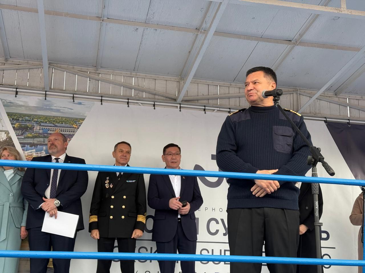 Сегодня спускаем на воду многофункциональное аварийно-спасательное судно «Алдан», которое будет работать на трассе Севморпути. Четыре судна этого проекта у нас уже есть, а «Алдан» станет жемчужиной в составе аварийно-спасательного флота, - отметил руководитель Морспасслужбы Виктор Чернов в приветственной речи, поблагодарив судостроителей от имени Морской спасательной службы за профессиональную работу .