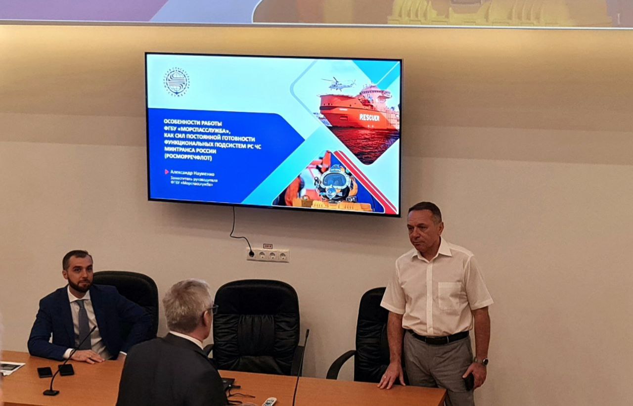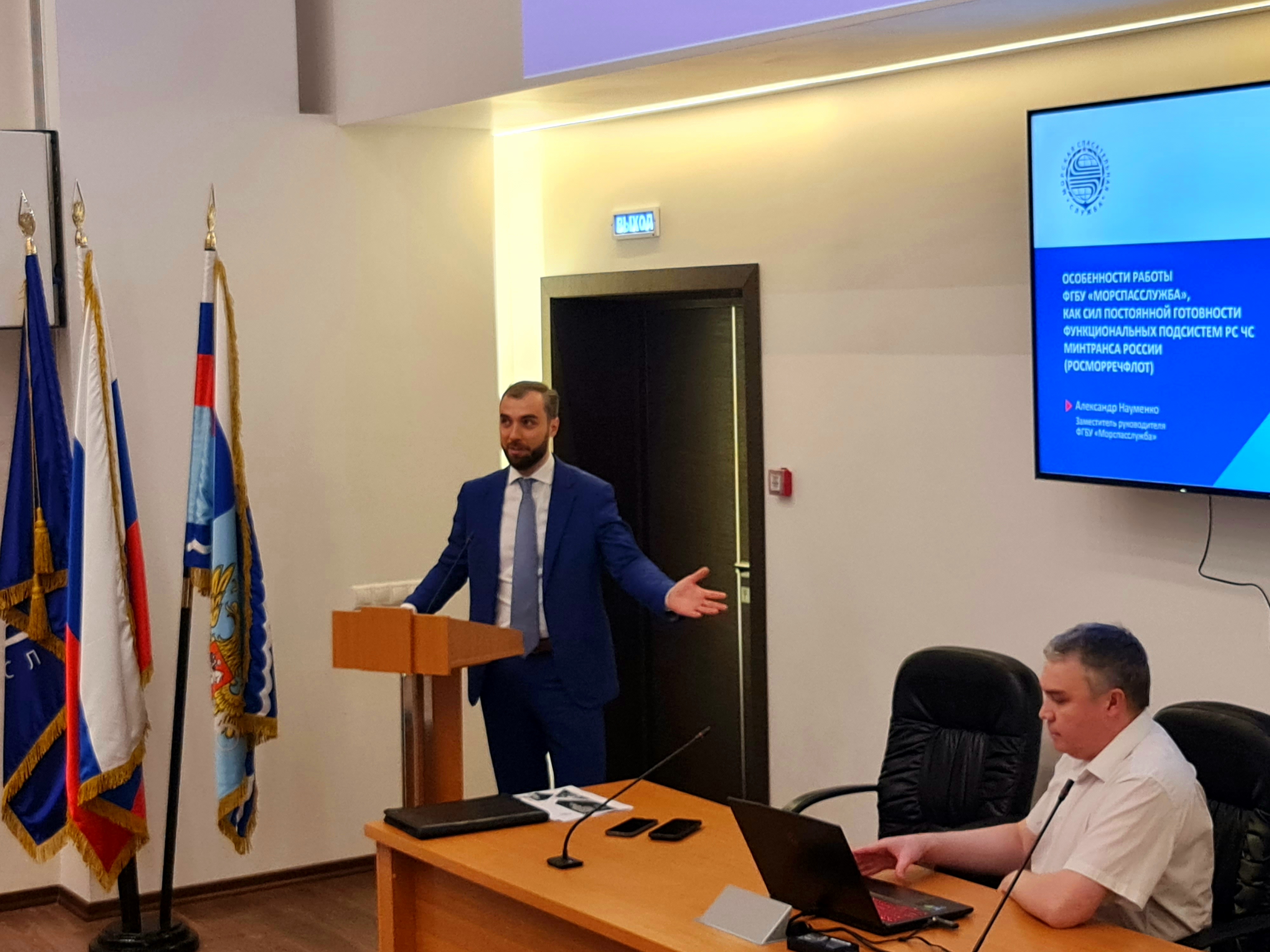 В ходе проведения сборов заместитель руководителя Морспасслужбы Александр Науменко познакомил участников с особенностями работы морских спасательных сил, как сил постоянной готовности функциональных подсистем Единой государственной системы предупреждения и ликвидации чрезвычайных ситуаций Минтранса России (Росморречфлота). Он подробно рассказал о структуре, задачах и оперативных возможностях Морспасслужбы при реагировании на ЧС в акваториях Российской Федерации.