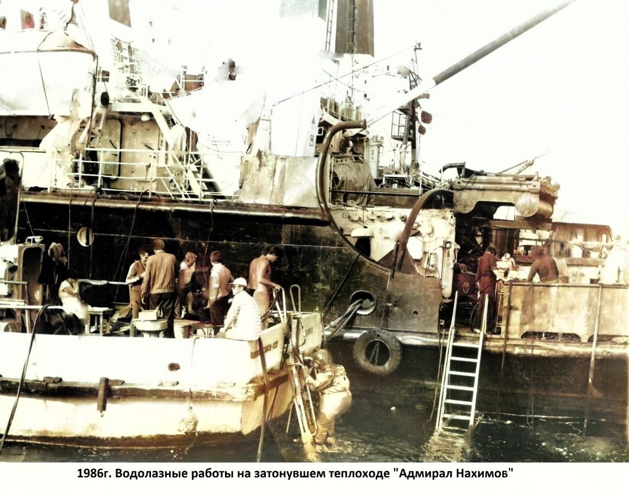Овсеенко З.М.: "Первым начал спуск водолаз Юрий Смага с заданием - определить положение затонувшего судна и глубину по верхней его части. Я на водолазном стенде следила за глубиной и дыханием водолаза, а Борис Петрович Любецкий за «пузырями» на поверхности. В какой-то момент Юрий Смага вдруг перестал дышать. Мы увидели на экране, что он в иллюминатор увидел лицо одного из погибших пассажиров теплохода. Нам удалось успокоить его и благополучно завершить спуск. Аварийно-спасательная операция продолжалась еще много дней."