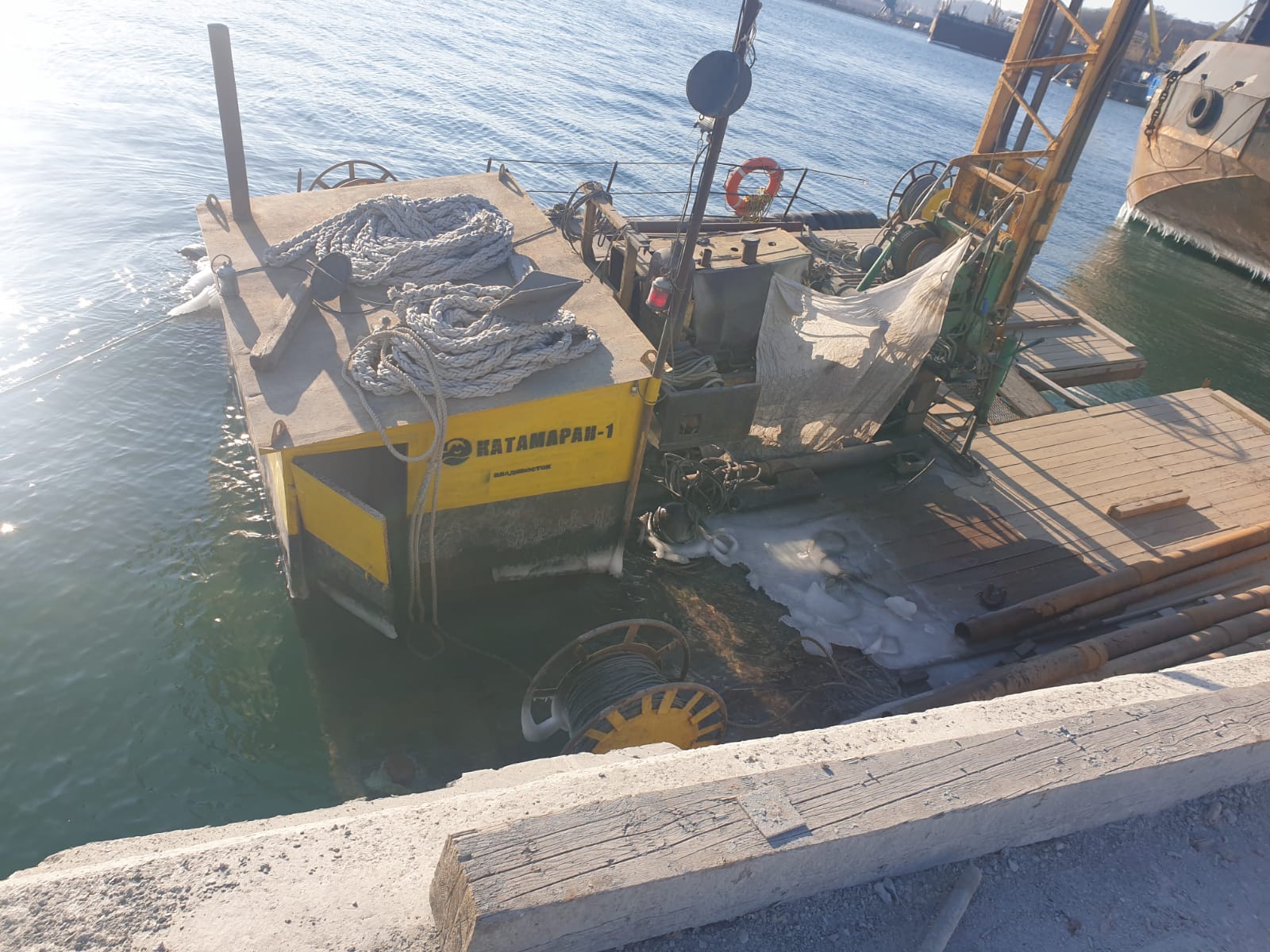 По предварительным данным, во время ремонтных работ на «Катамаран-1» (размеры катамарана 9,5м х 10,4м) из-за повреждения понтона кормовая часть ушла под воду. При этом не было зафиксировано никаких загрязнений окружающей среды, и угрозы для судоходства не предвиделось. На борту находился только один член экипажа.