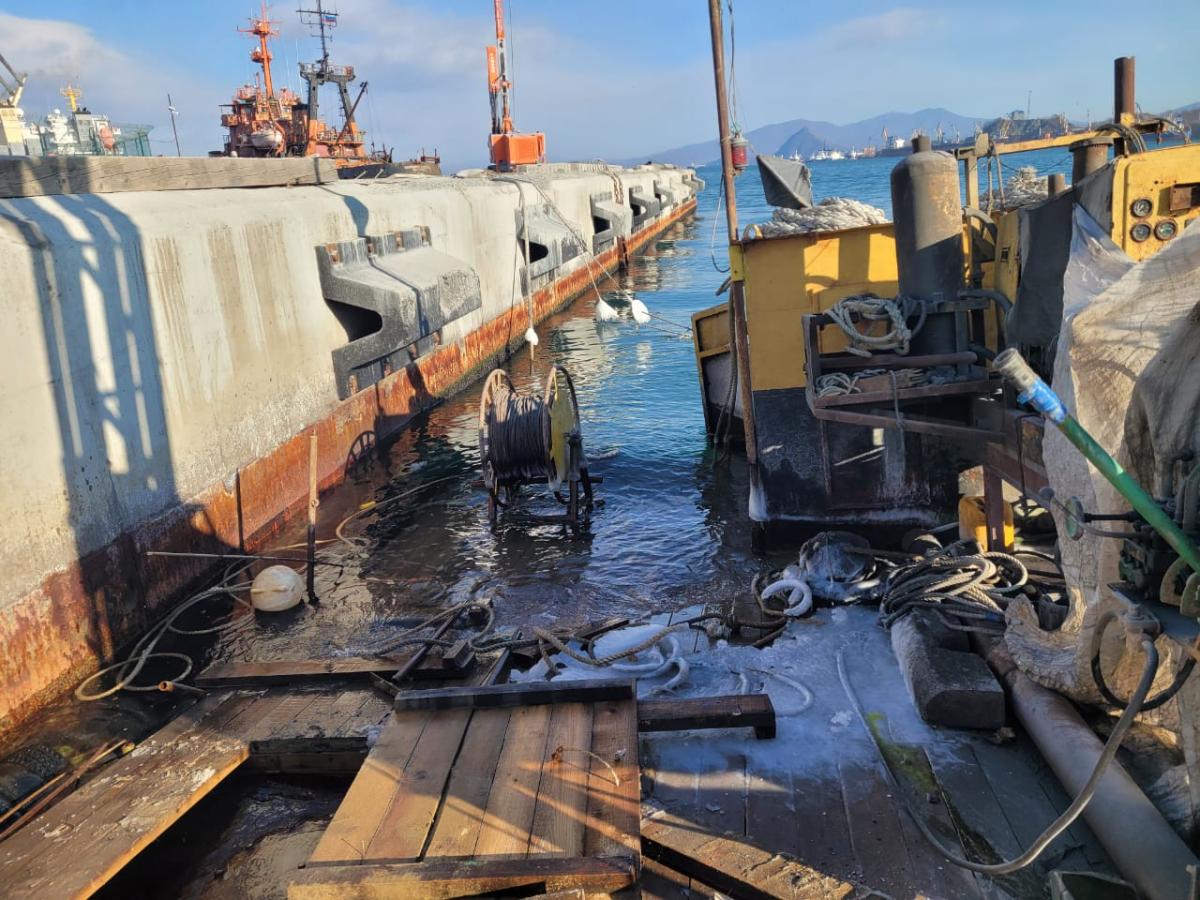 После окончания работ на аварийном судне экипаж морского водолазного судна «Ростов Великий» Приморского филиала Морспасслужбы отбускировал «Катамаран-1» к причалу №9 для проведения дальнейшего ремонта.