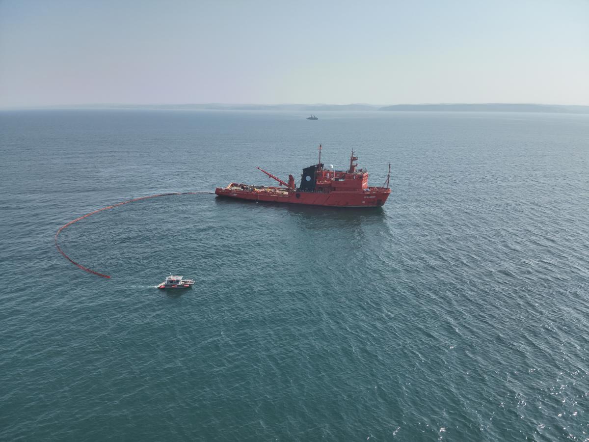 КОРСАКОВ (Сахалинская обл.) Совместное тренировочное учение перед утверждением плана ЛАРН проведено в заливе Анива акватории морского порта Корсаков. В отработке действий по локализации и ликвидации разлива нефтепродуктов при осуществлении хозяйственной деятельности ООО «ИМТРЕЙД» в морских портах Сахалинской области были задействованы суда и спасатели Сахалинского филиала ФГБУ «Морская спасательная служба».