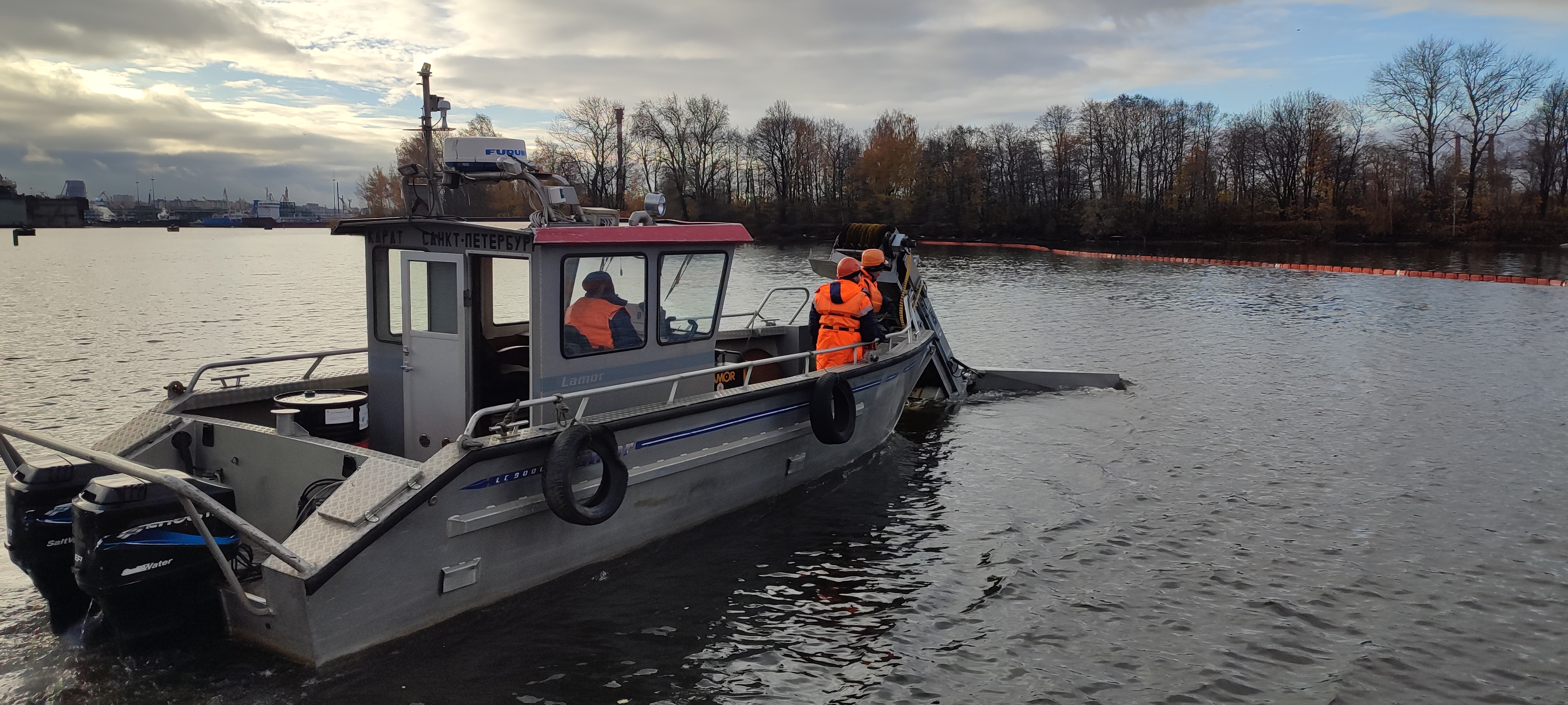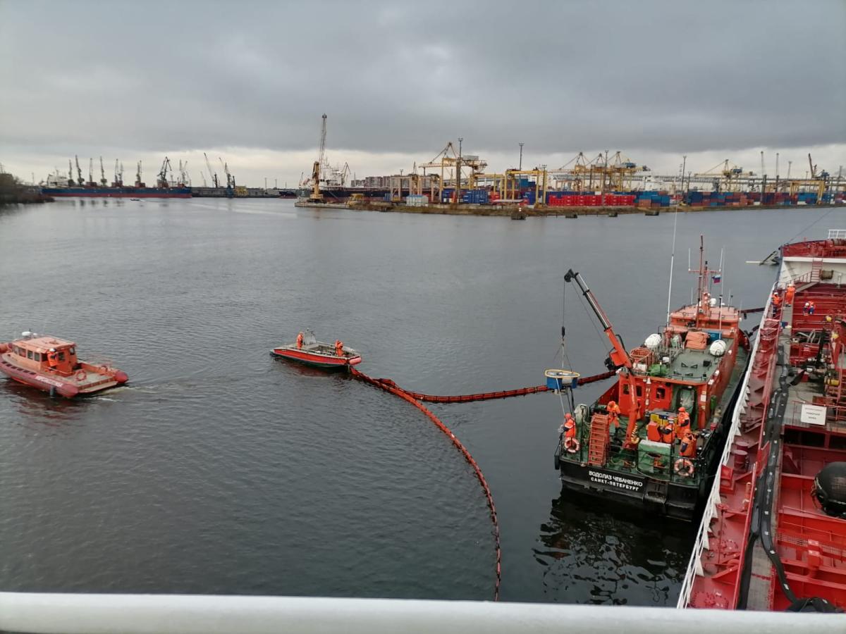 В акватории морского порта «Большой порт Санкт-Петербург» проведено учение по борьбе с аварийным нефтеразливом