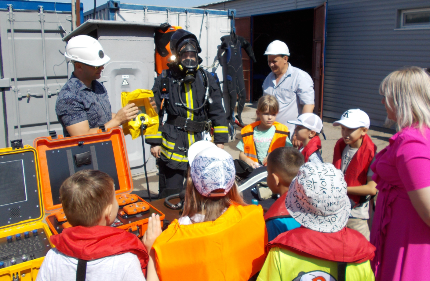 Заместитель директора по аварийно-спасательной работе Каспийского филиала Иван Панченко и старший водолазный специалист Игорь Усов рассказали школьникам о правилах безопасности на воде и особенностях работы спасателей и водолазов. Ребята не только прослушали увлекательный рассказ о профессии, но и примерили элементы водолазного снаряжения и средства индивидуальной защиты.