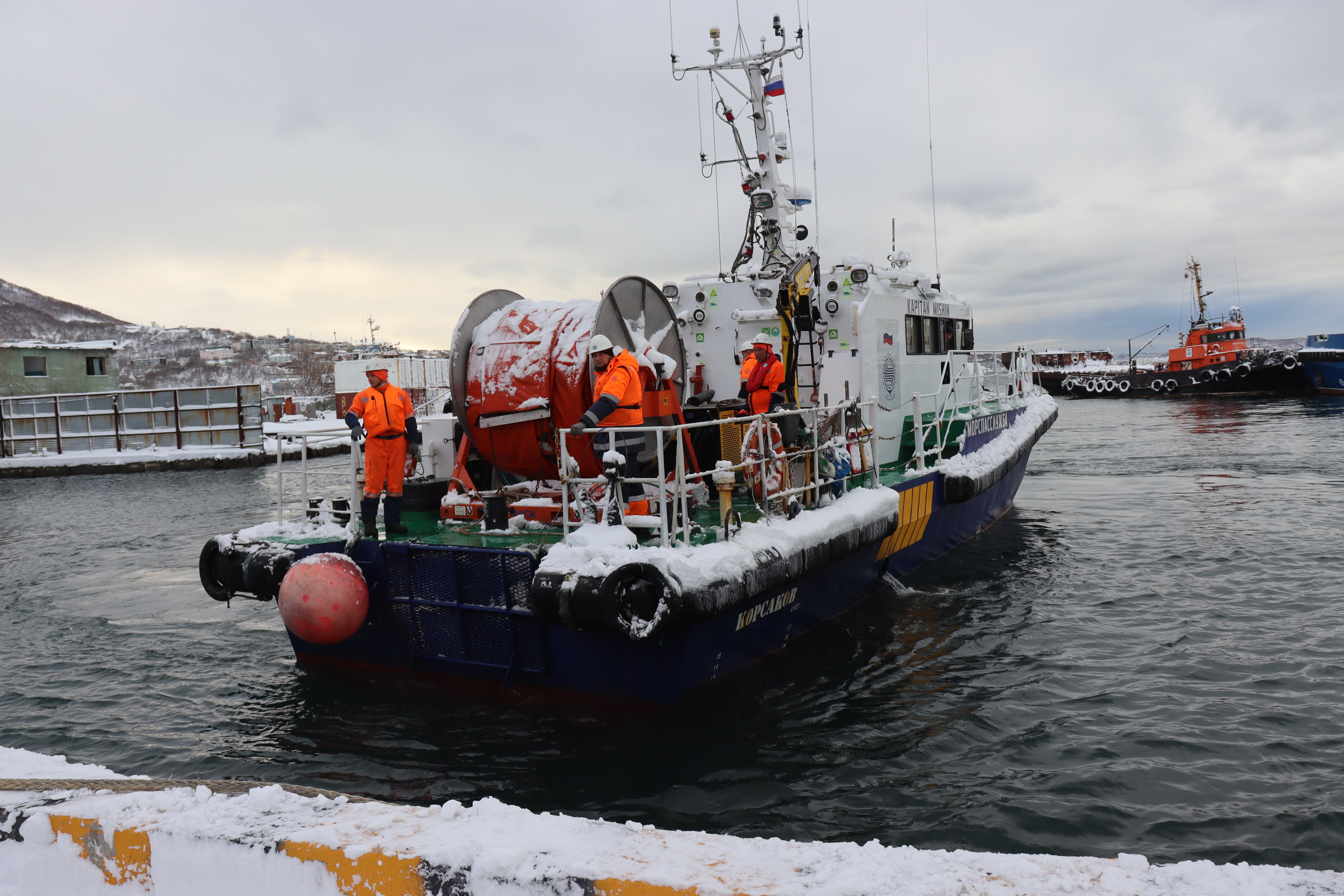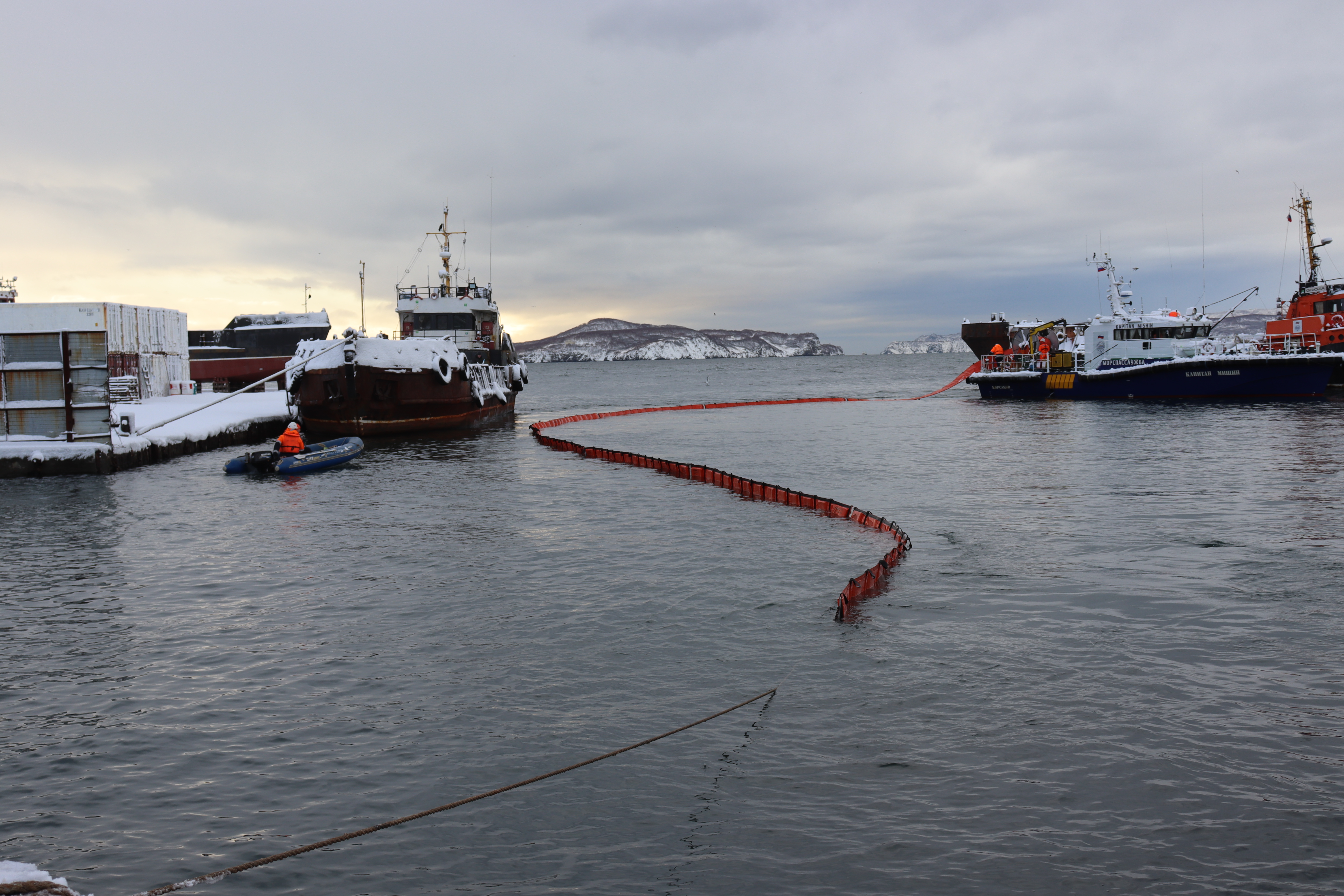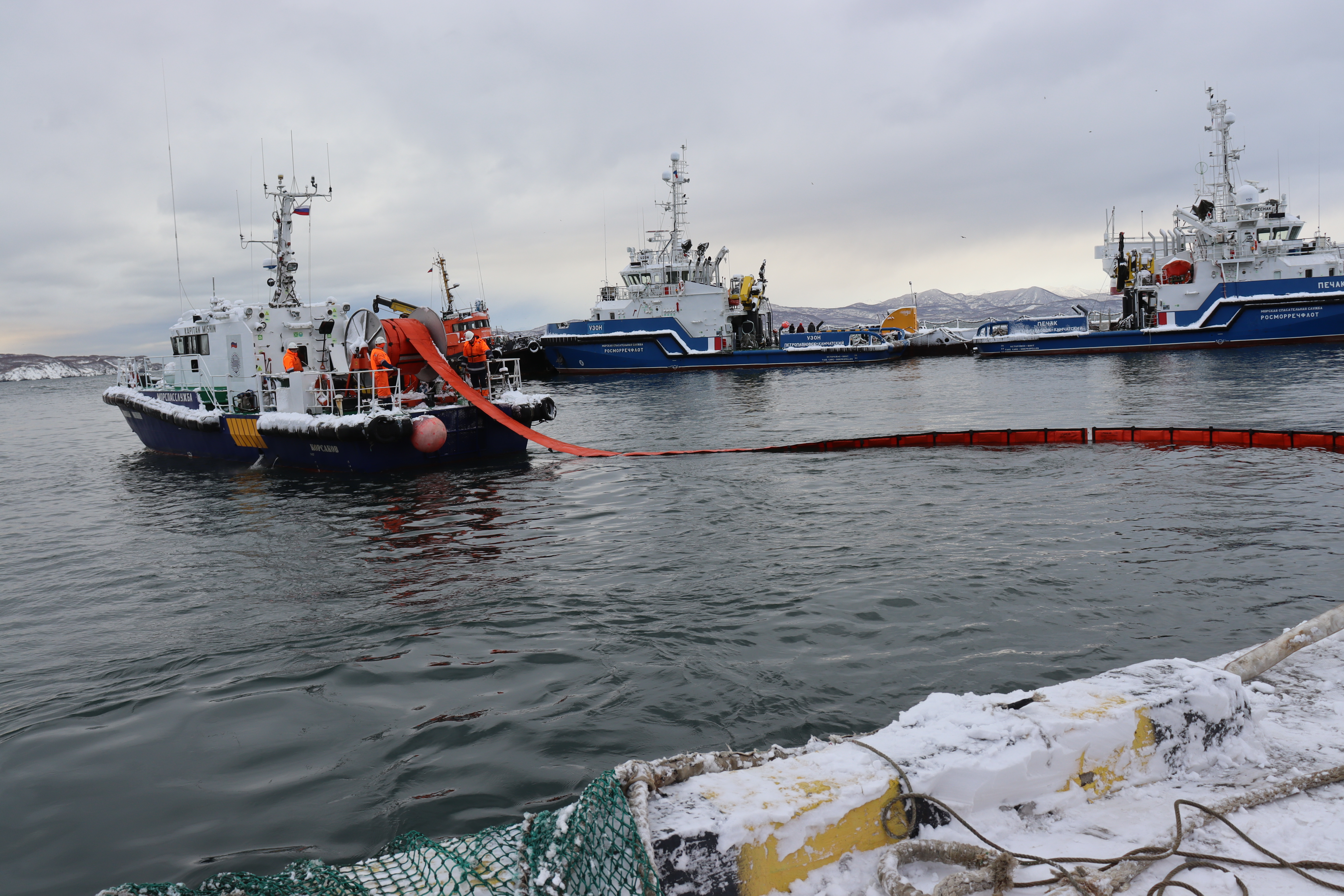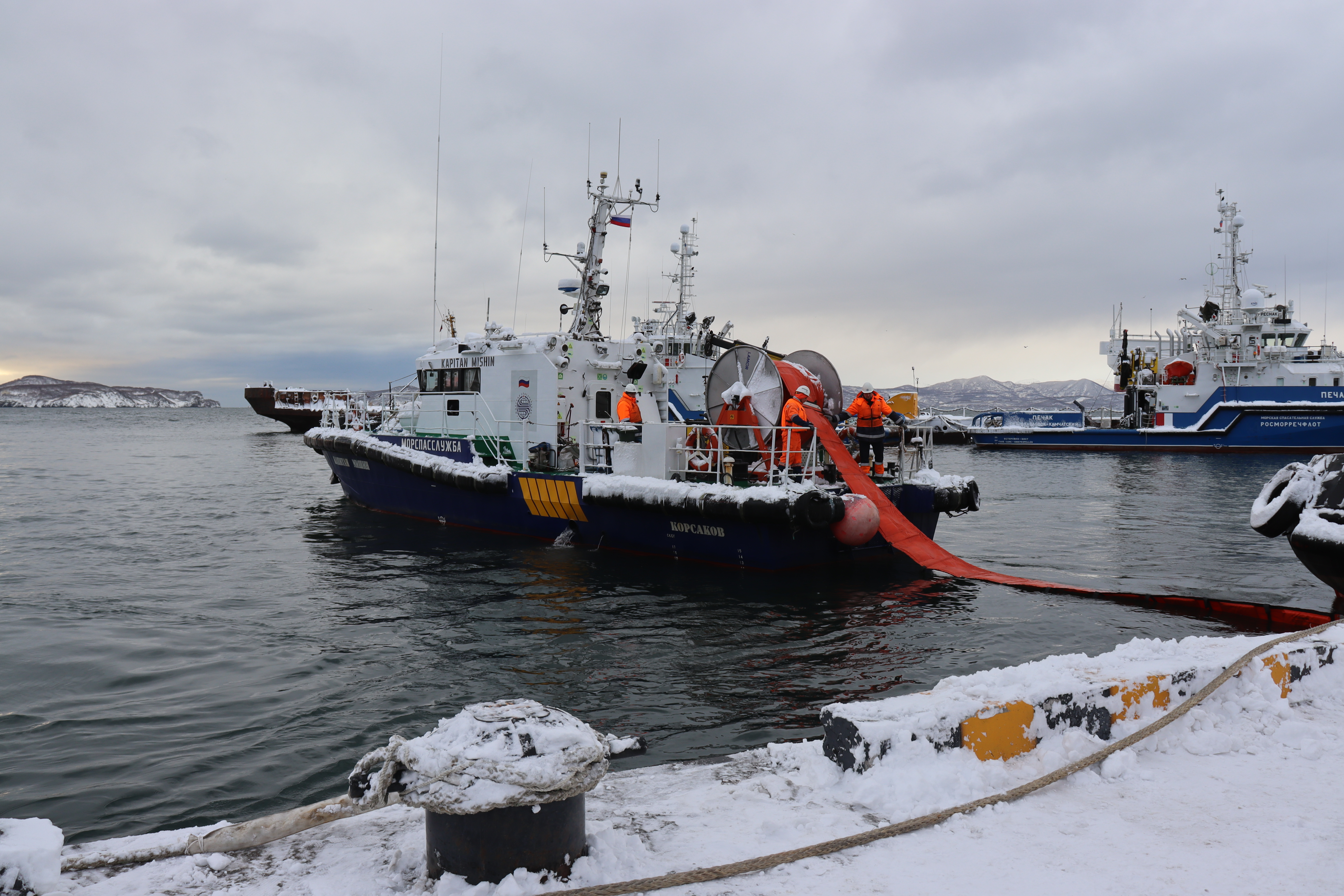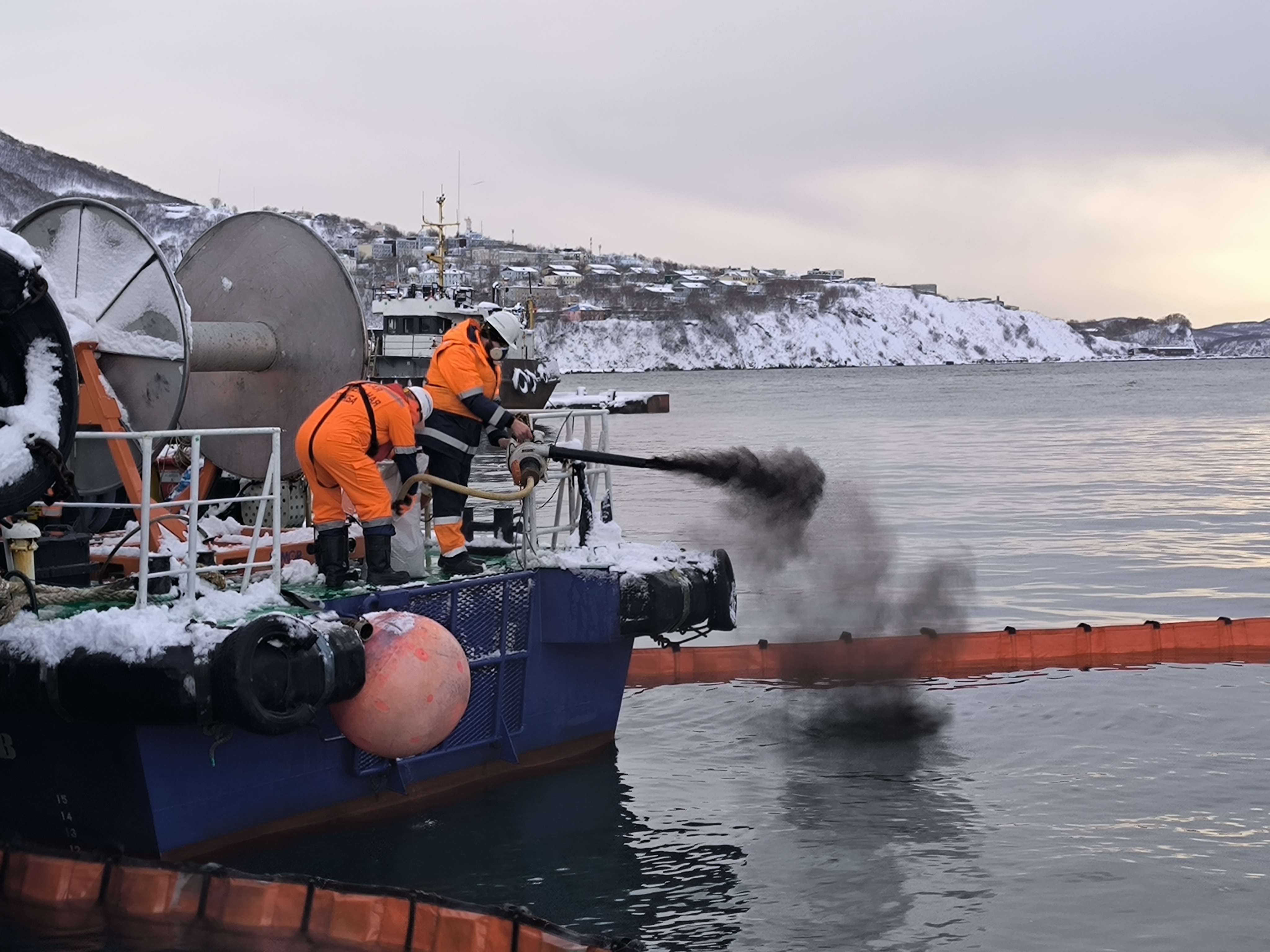 ПЕТРОПАВЛОВСК-КАМЧАТСКИЙ. На акватории морского порта Петропавловск-Камчатский у мыса Сигнальный 19 ноября 2025 проведено совместное тренировочное учение перед утверждением плана ЛАРН при эксплуатации нефтеналивных судов.