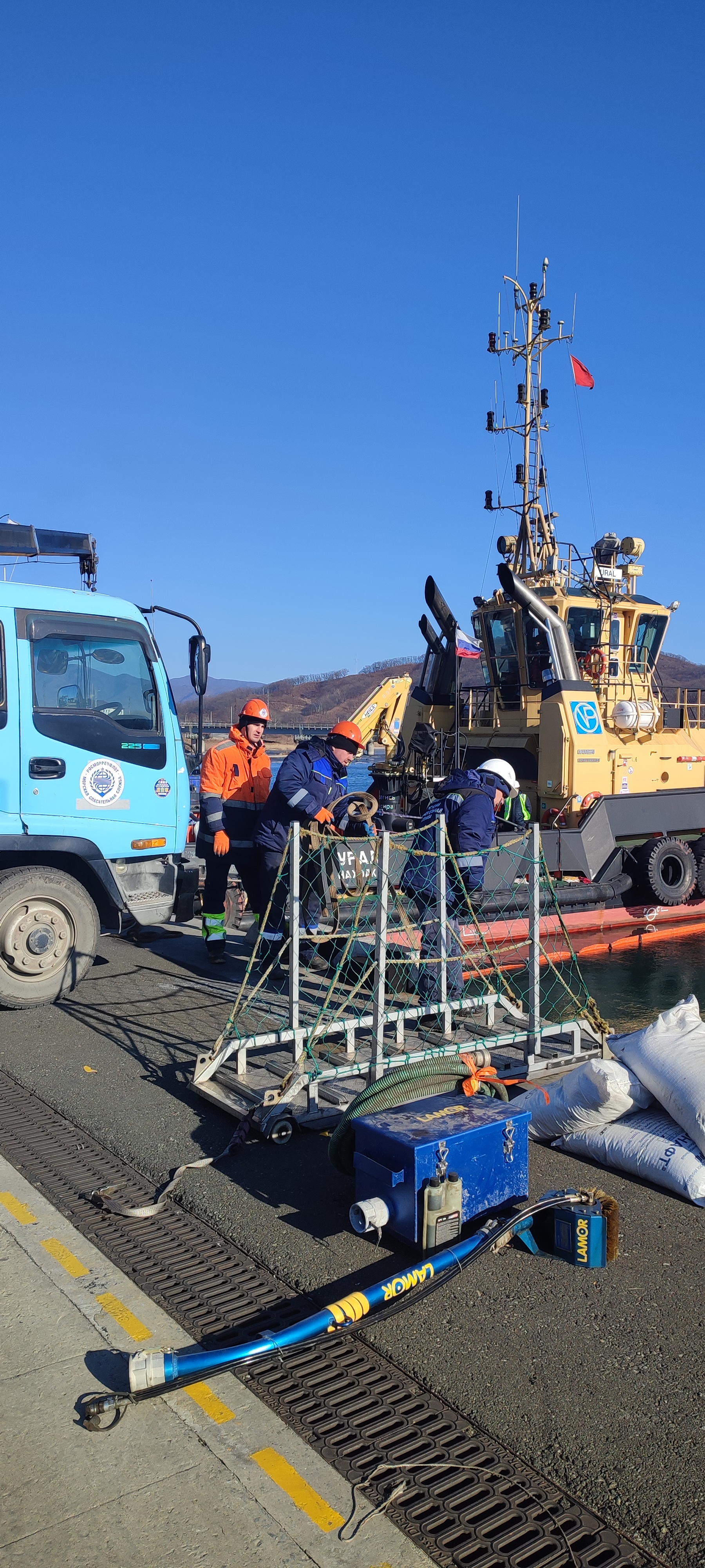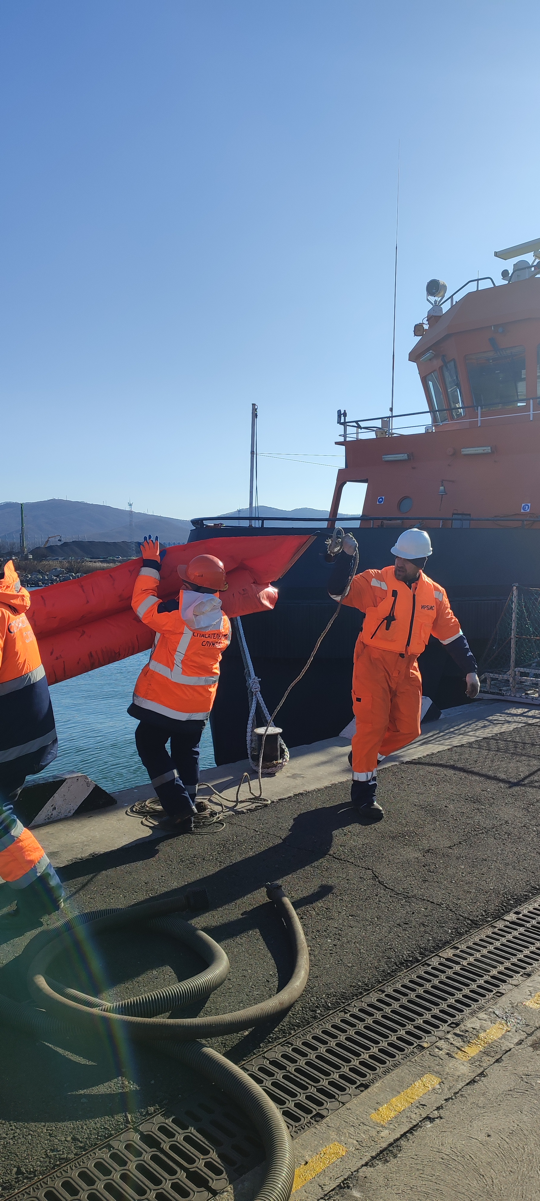 ПРИМОРСКИЙ КРАЙ. Спасатели Приморского филиала Морской спасательной службы, аварийно-спасательные подразделения п. Находка и п. Владивосток, провели совместные со специалистами АО «Восточный порт» тренировочные учения по ликвидации разливов нефти и нефтепродуктов в порту Восточный. Главная цель тренировки – отработка взаимодействий между Комиссией по чрезвычайным ситуациям (КЧС) бункеровочной компании и силами Приморского филиала при чрезвычайной ситуации в сложных погодных условиях.