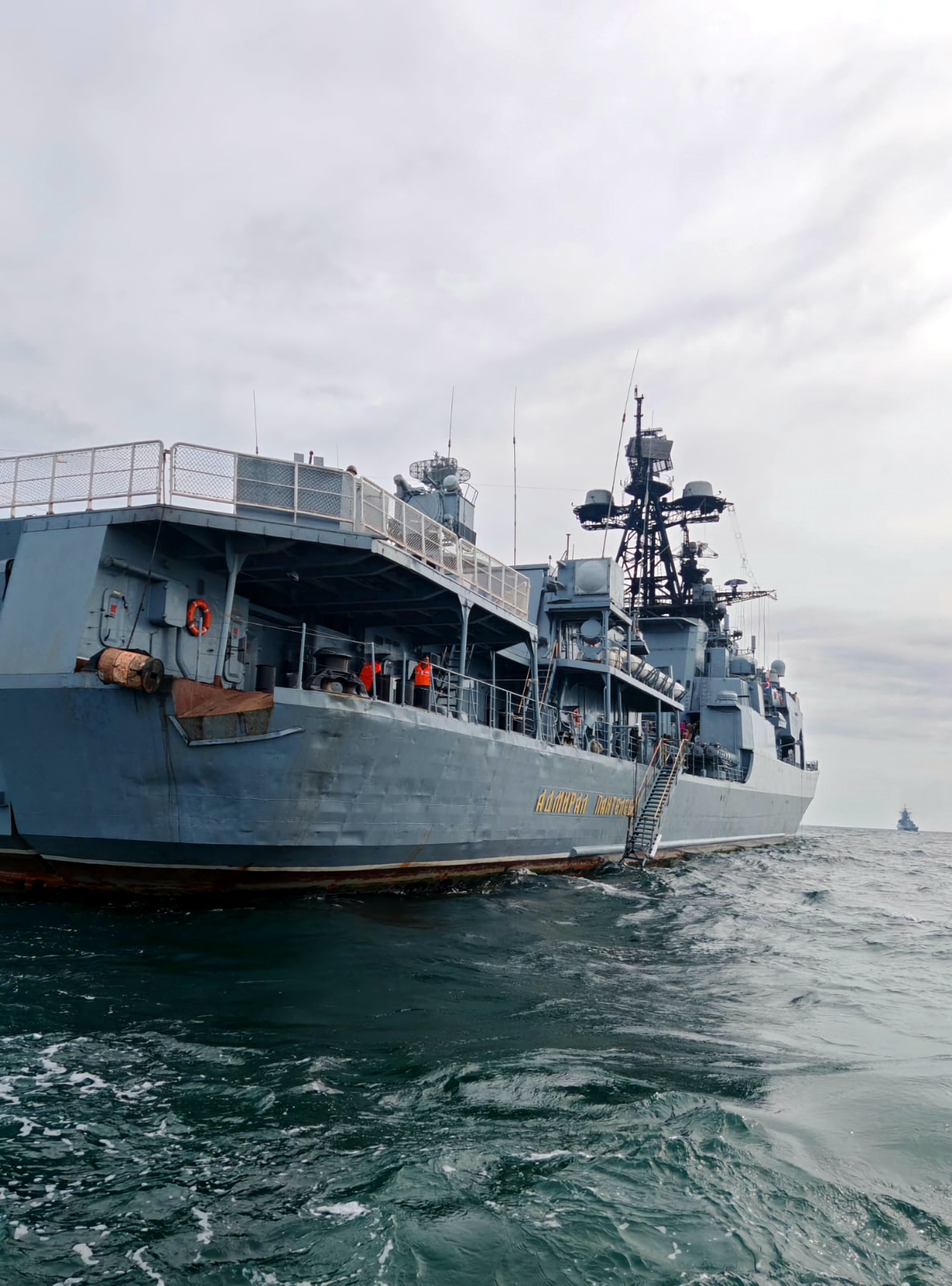 Работники Сахалинского филиала и их дети посетили большой противолодочный корабль "Адмирал Пантелеев", который находился на рейде порта Корсаков в рамках масштабной патриотической акции "Сила в правде – 2025".