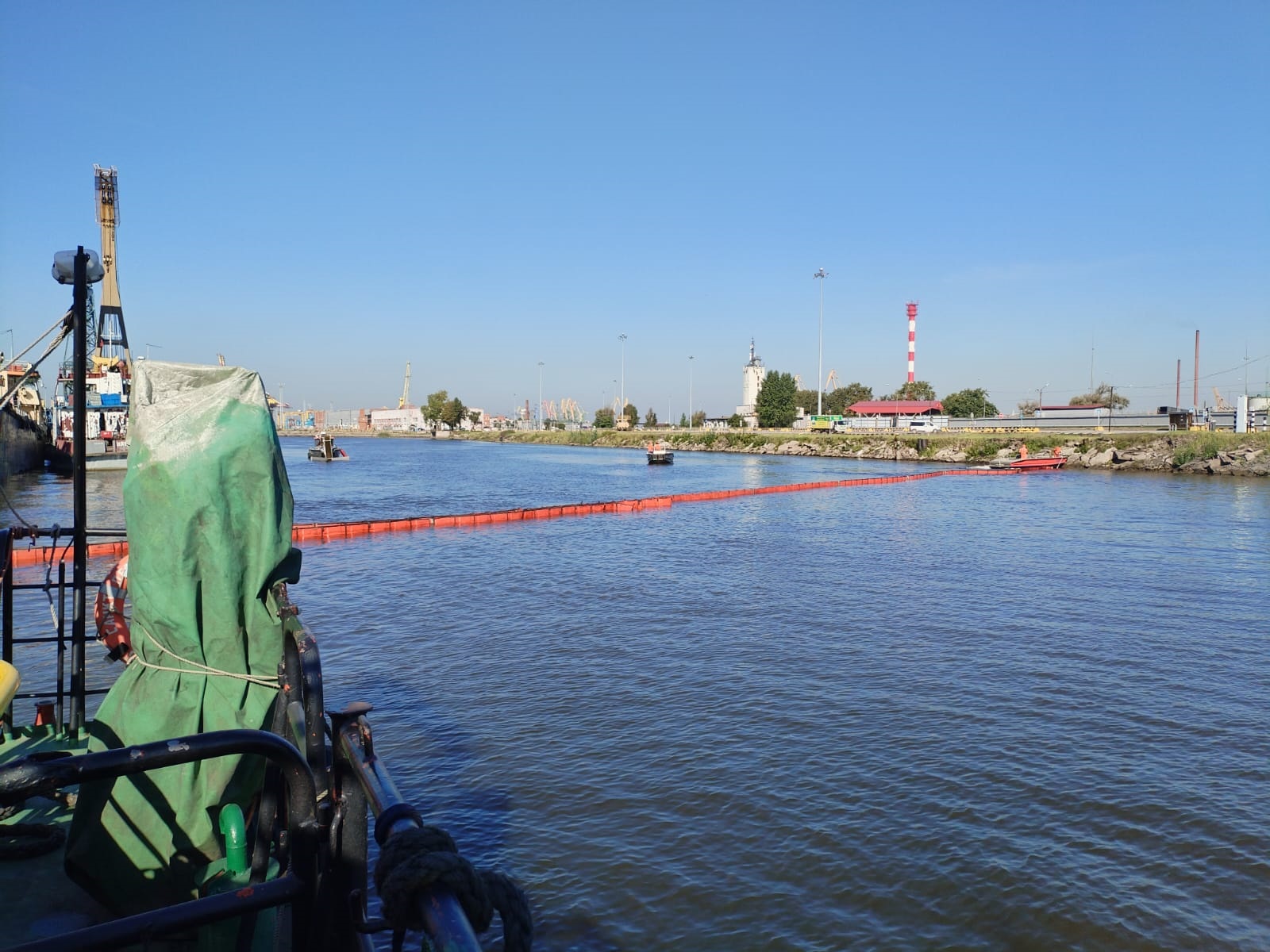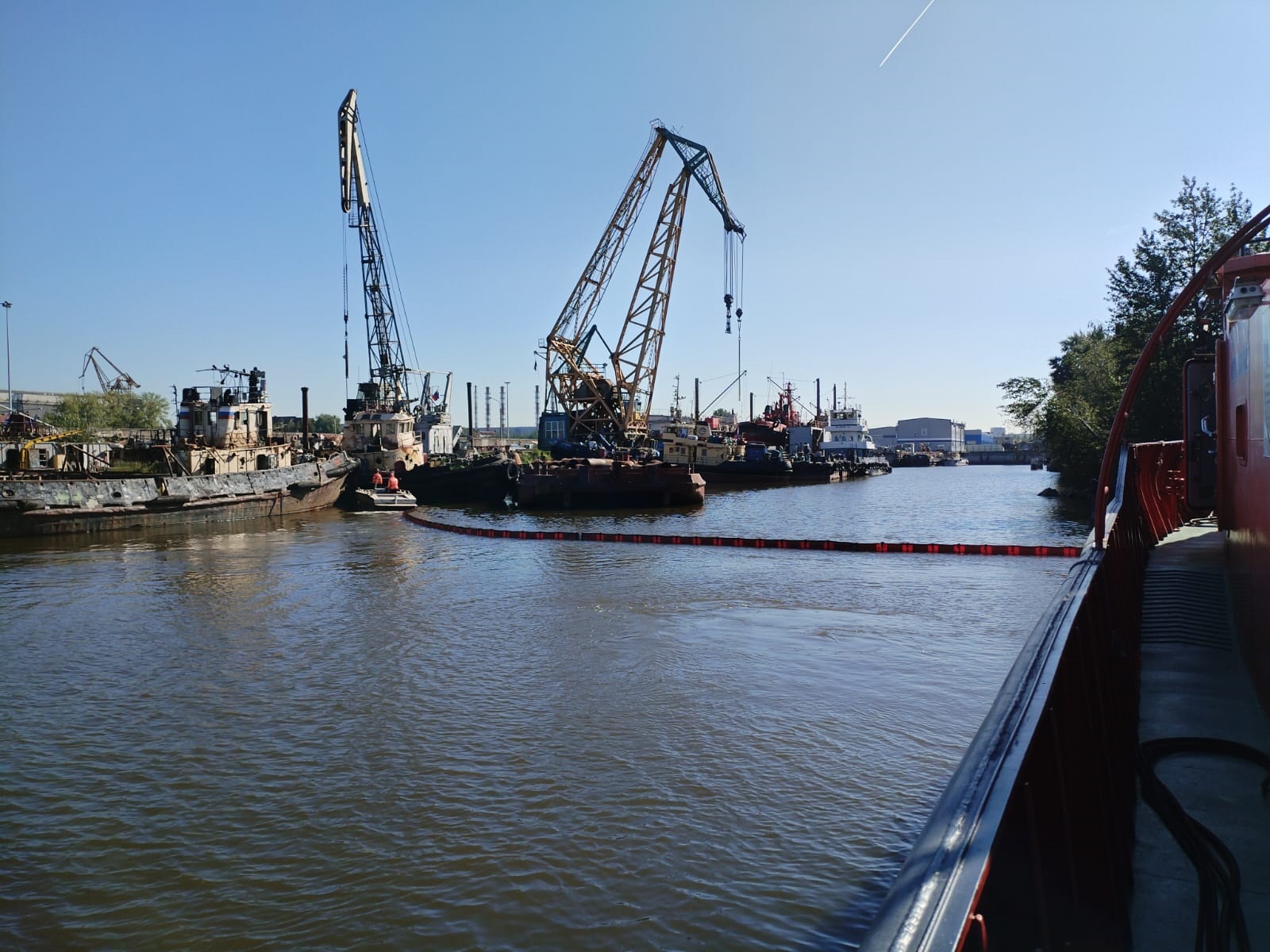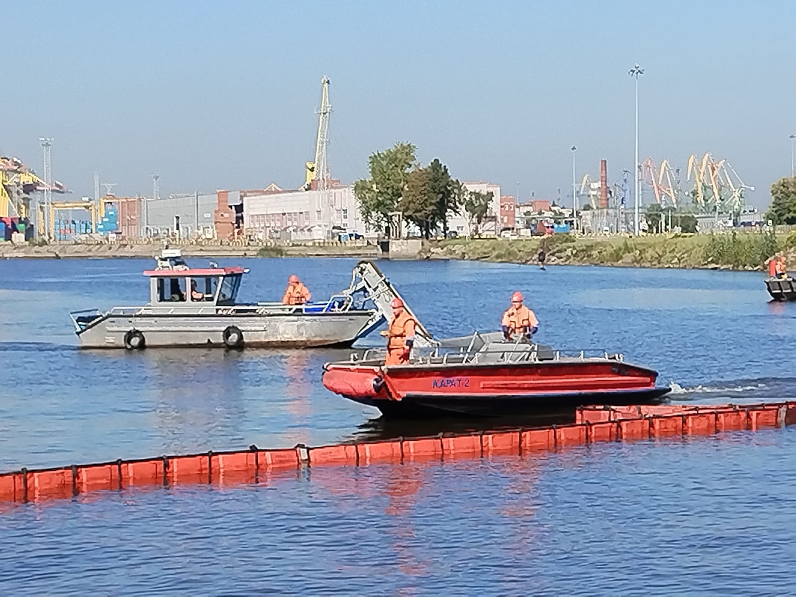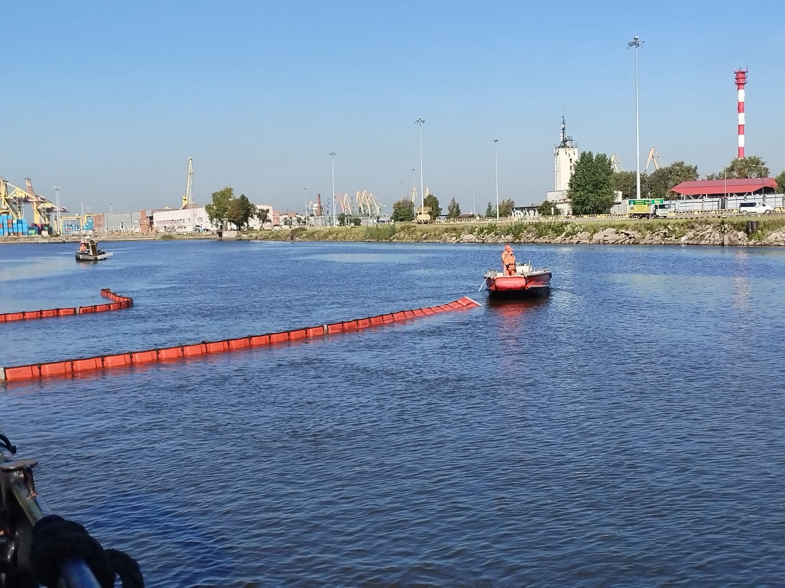 После проведения газовой разведки воздуха, условный разлив был локализован тремя рубежами боновых заграждений БПП-830. Сбор нефтепродуктов осуществлялся нефтесборными системами «Lamor Minimax 20», «Lamor Bow Collector», «Lamor LMS-70». Для транспортировки собранной нефтеводяной смеси спасатели вооружили более 150 м рукавных линий.