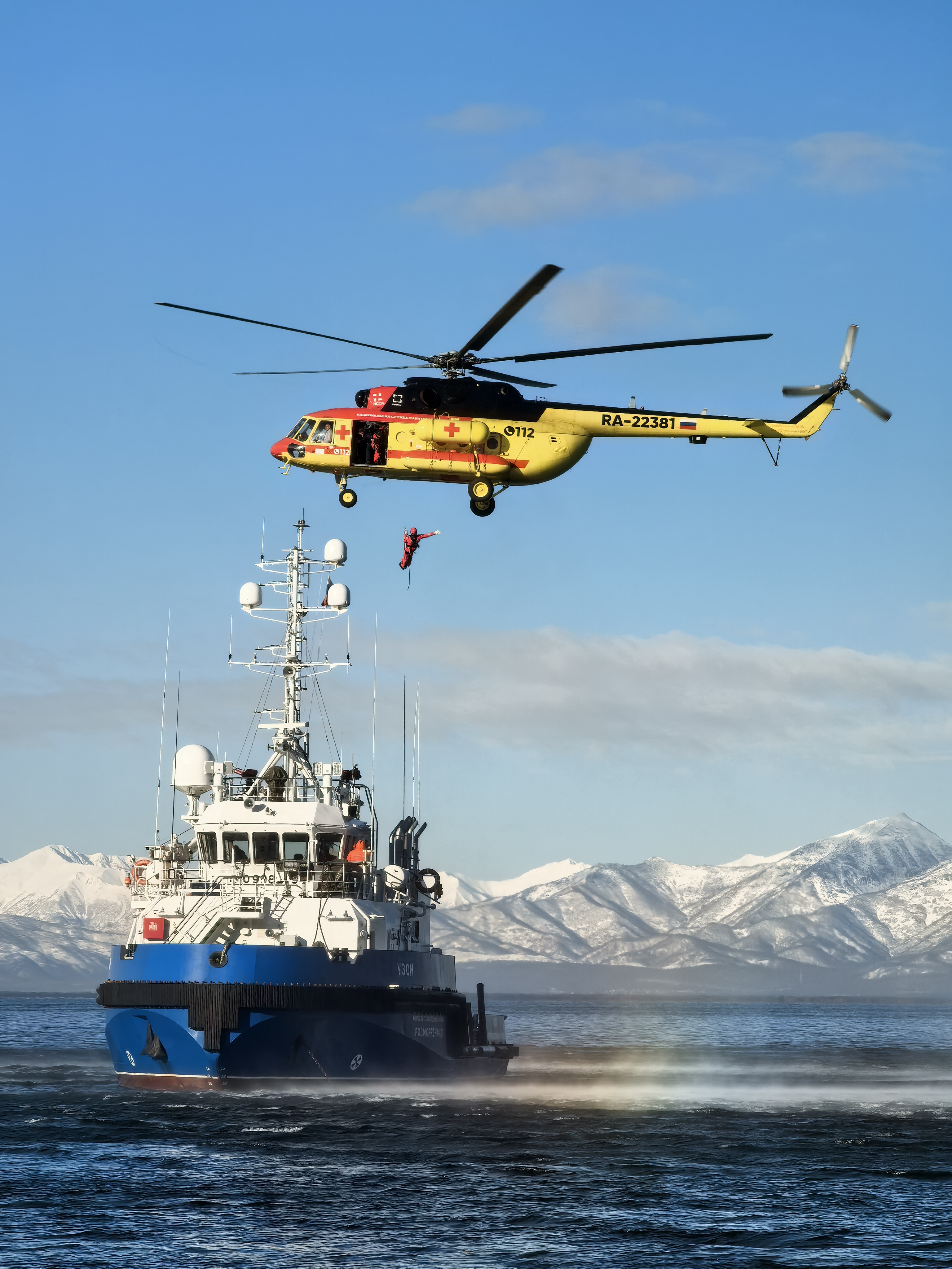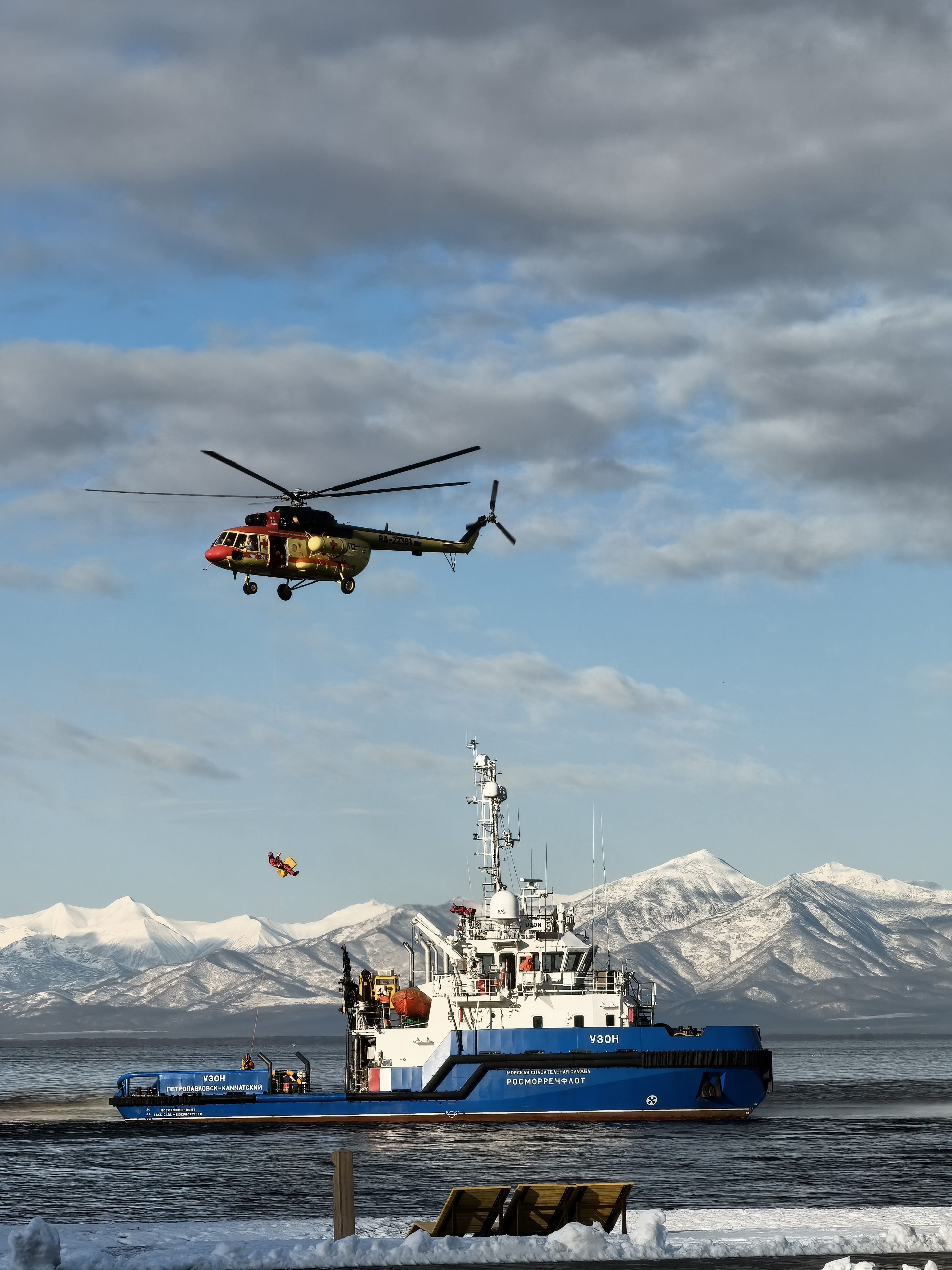 В ходе их проведения с борта спасательного судна «Узон» успешно эвакуировали всех «пострадавших» при помощи специального спасательного оборудования. Экипажи спасательного судна и вертолета отлично справились с поставленной задачей.