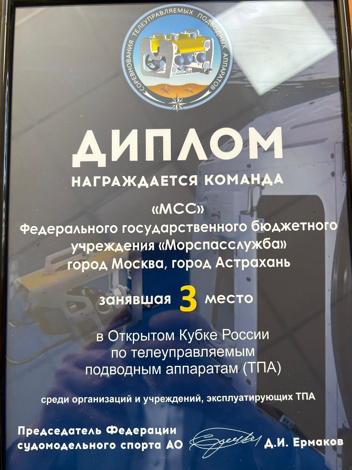 АСТРАХАНЬ. Команда ФГБУ «Морспасслужба», впервые участвуя в Открытом Кубке России по телеуправляемым подводным аппаратам (ТПА), стала «бронзовым» призёром.