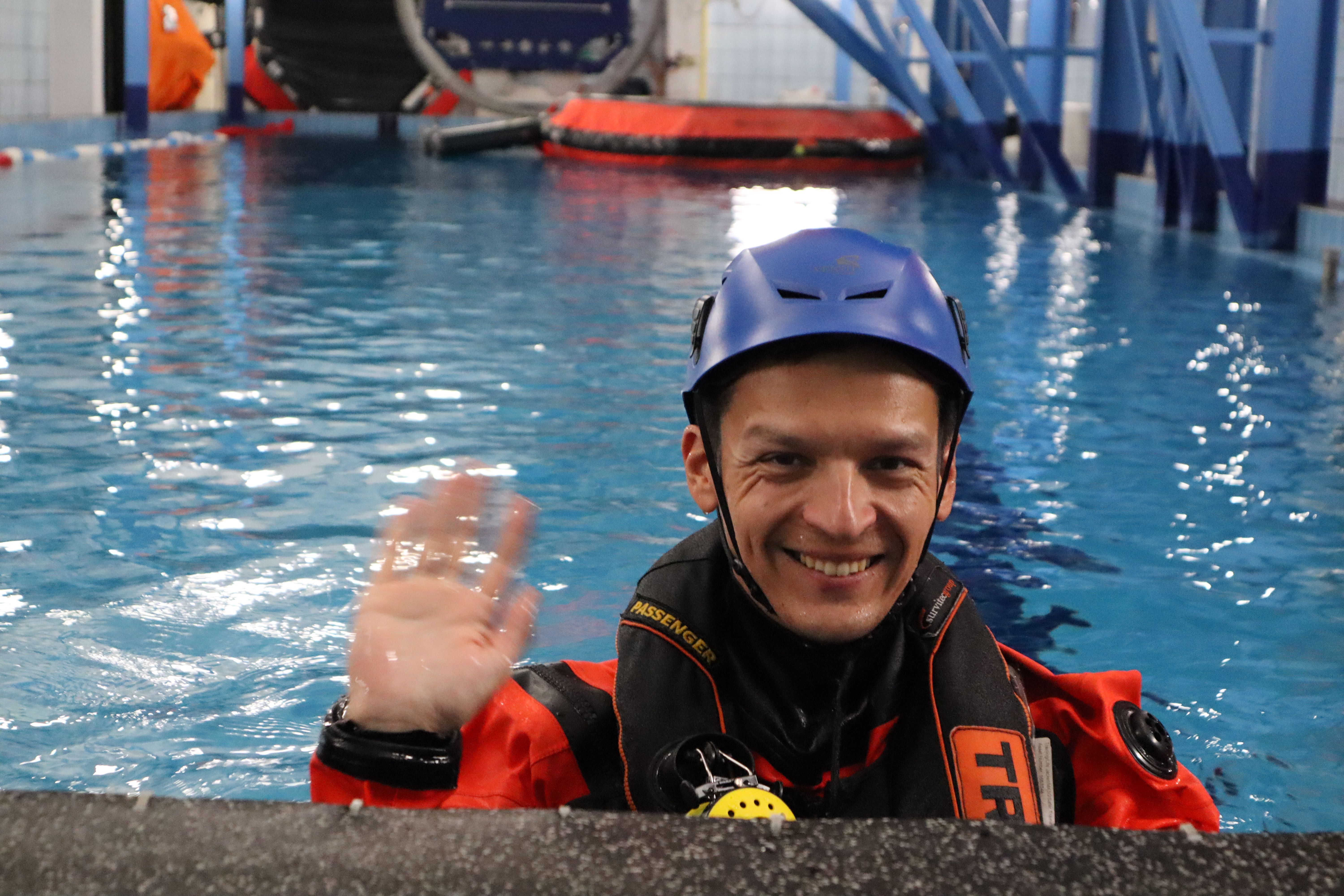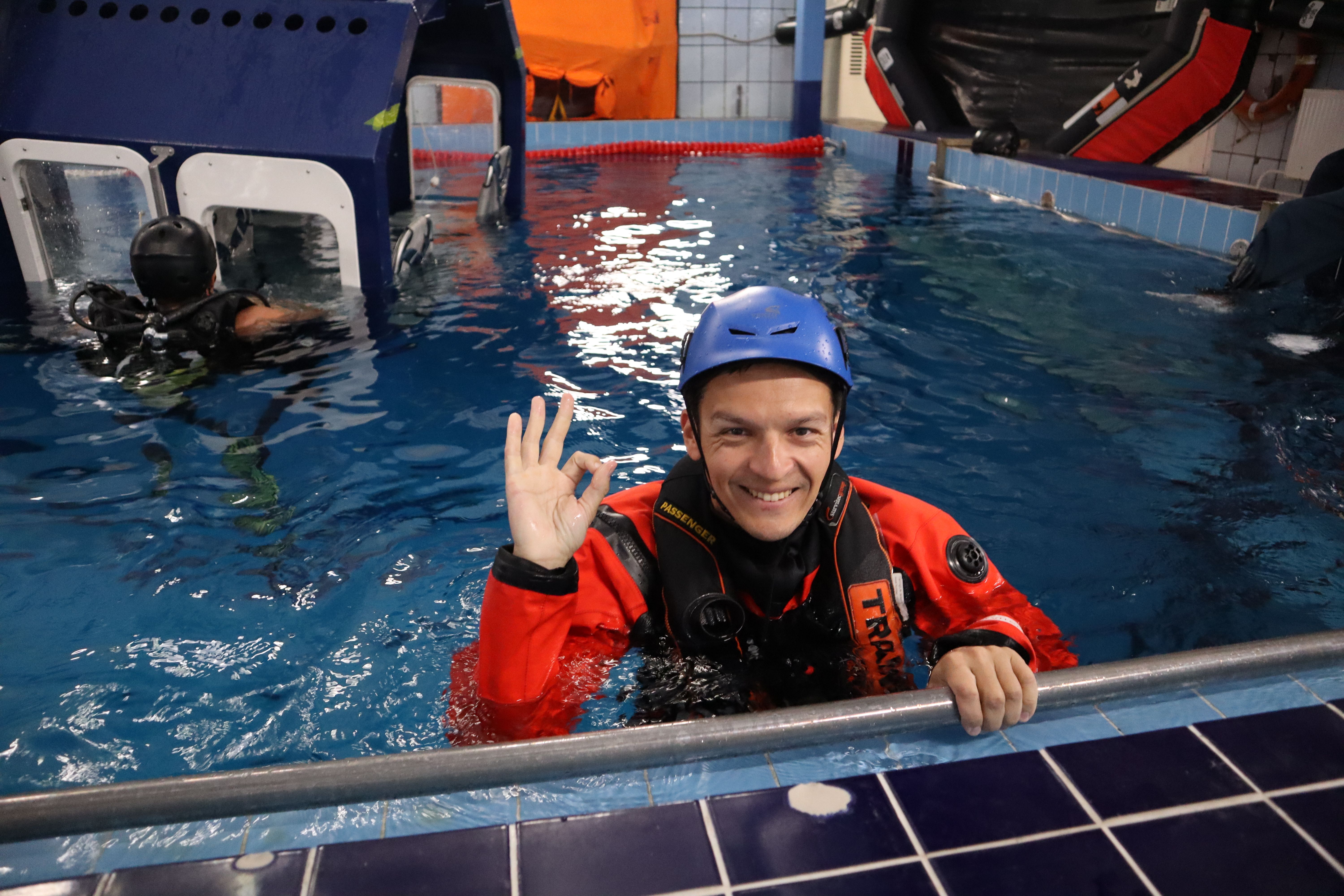 Космонавт Роскосмоса освоил в Морспасслужбе программу эвакуации из вертолета при аварийном приводнении