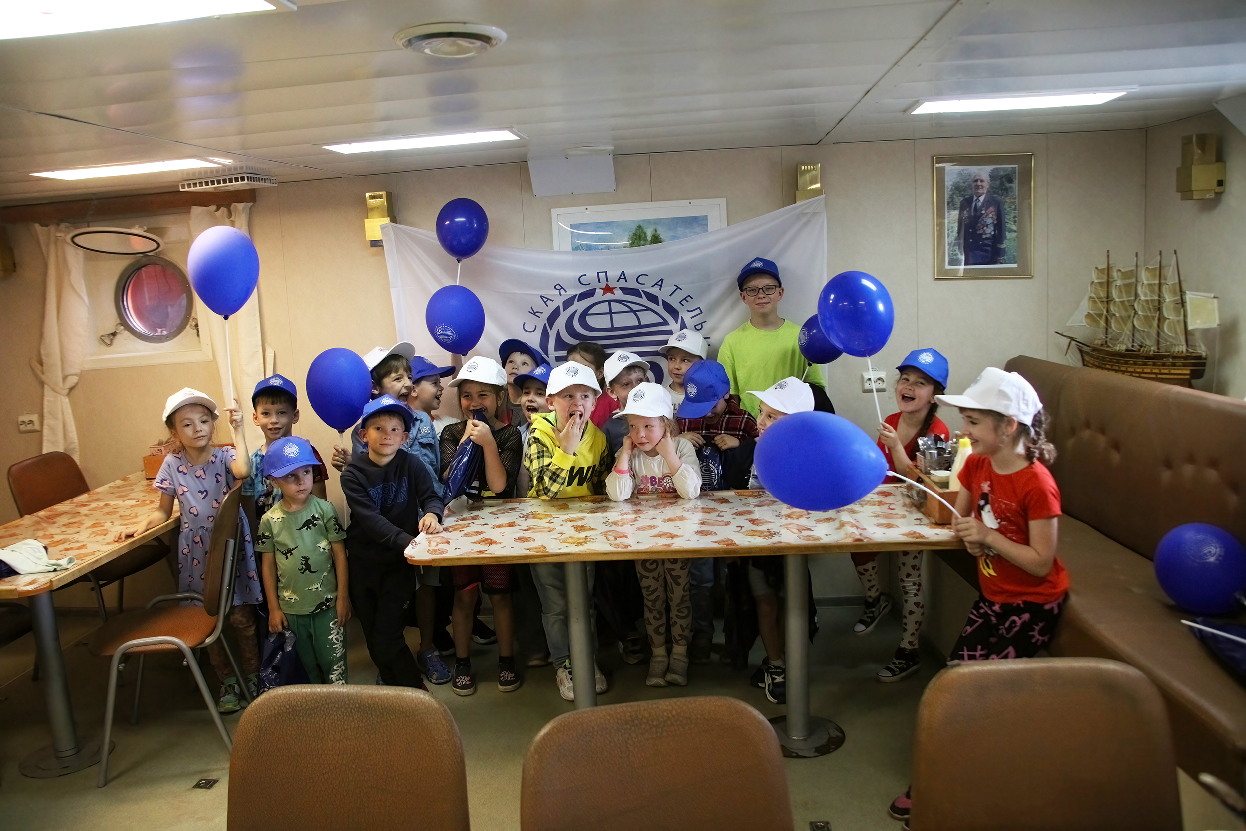 После экскурсии на борту спасательного судна, по флотской традиции группа детского садика «Маленькая страна» посетила кают-компанию МФАСС «Спасатель Заборщиков», где морские спасатели по правилам гостеприимства предложили детям сладкий стол с чаепитием. По завершении встречи спасатели Приморского филиала организовали детишкам фотосессию.