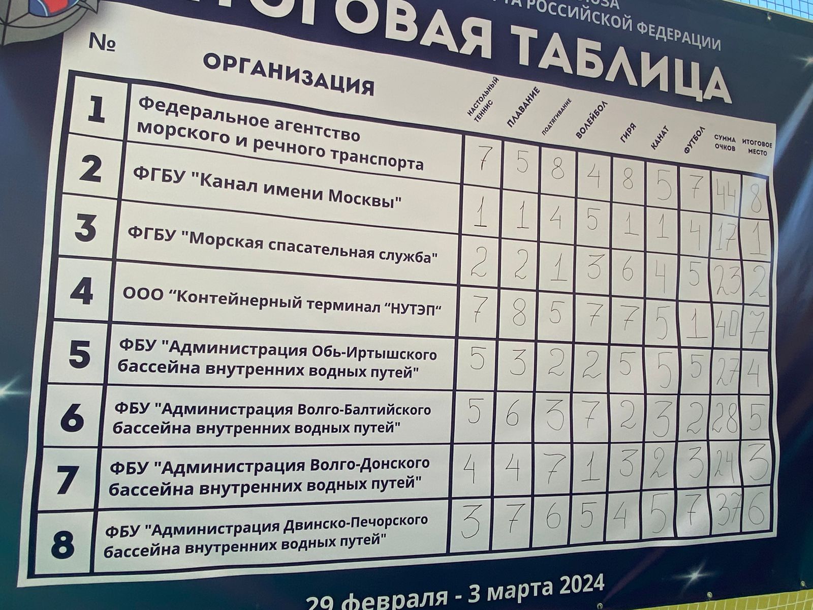 В упорной борьбе Морспасслужба завоевала Кубок второго места Спартакиды и отстояла серебряные медали турнира. Руководитель ФГБУ «Морспасслужба» Виктор Чернов лично поддерживал команду учреждения на всех этапах Спартакиады.