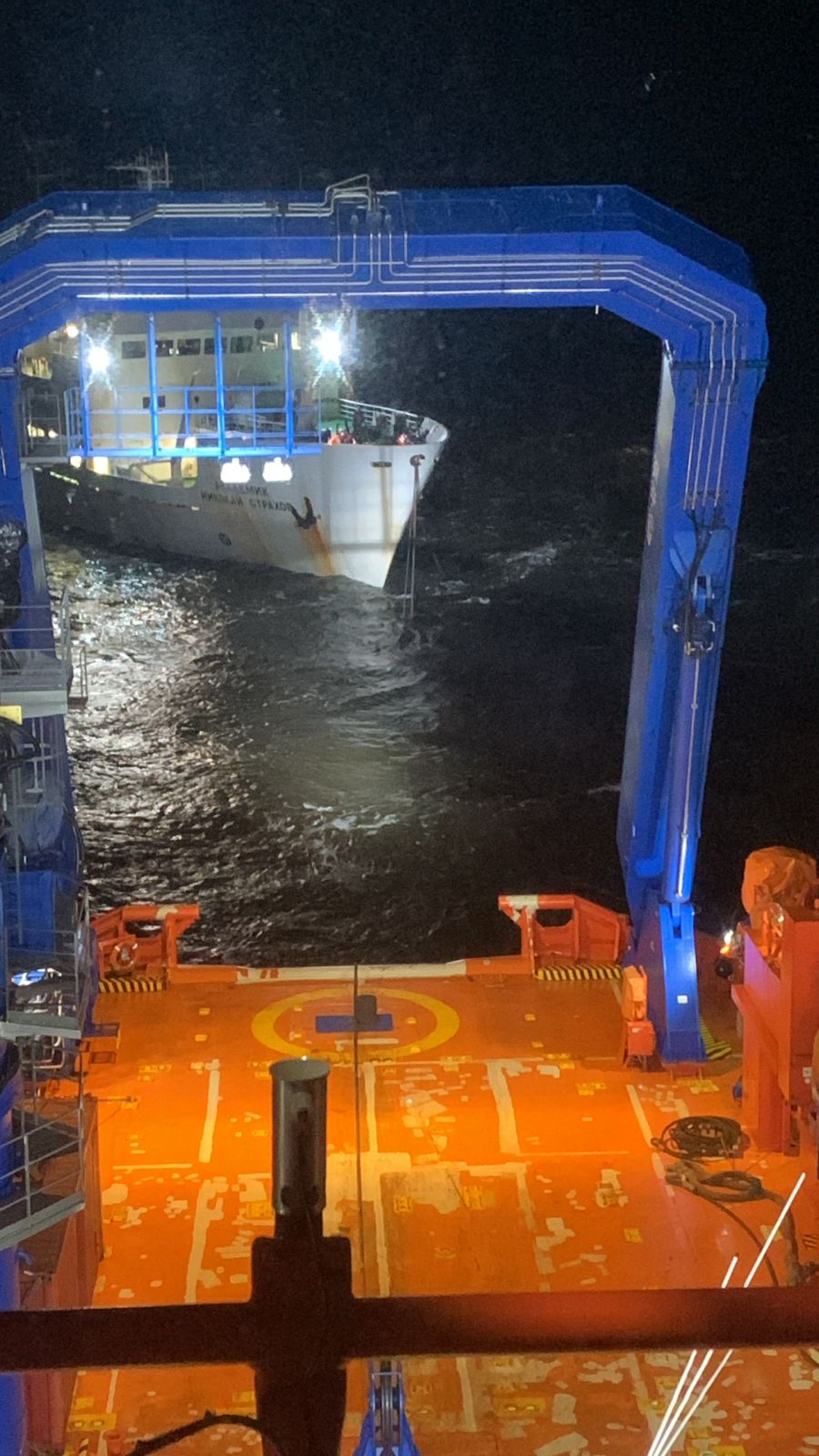 На помощь аварийному судну прибыл морской спасатель «Мурман», экипаж которого в сложных погодных условиях, сильном ветре и волнении моря, взял НИС «Академик Николай Страхов» на буксир и начал движение к порту Мурманск.