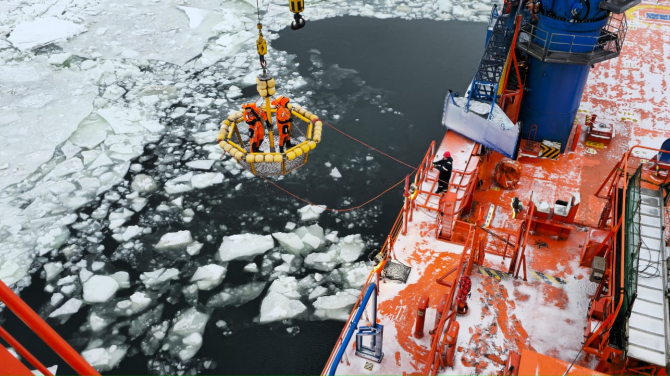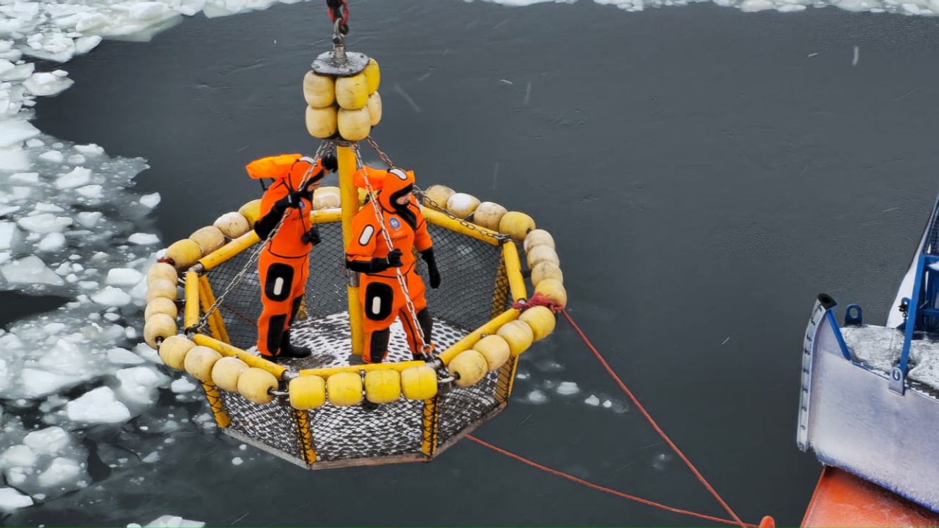 БАРЕНЦЕВО МОРЕ. В юго-восточной части Баренцева моря прошли совместные учения спасателей Северного филиала Морской спасательной службы и специалистов Cтационарного морского ледостойкого отгрузочного причала (СМЛОП) «Варандей». Цель прошедших учений - отработать действия подразделений при пожаре на СМЛОП, по эвакуации персонала Причала и ликвидации разлива нефтепродуктов. В совместных учениях были задействованы многофункциональное аварийно-спасательное судно «Мурман» и ледокол «Варандей», а также спасательные подразделения.