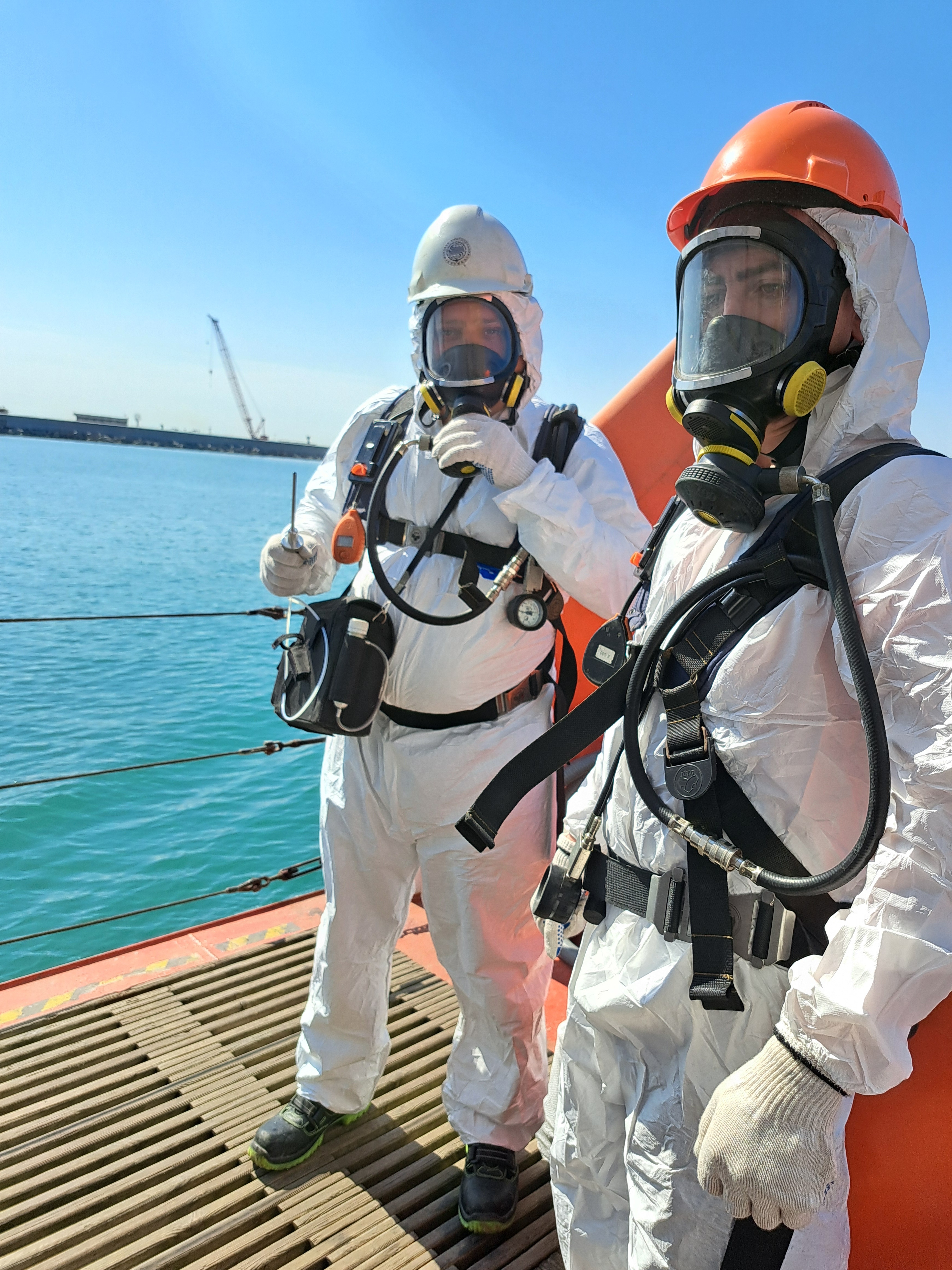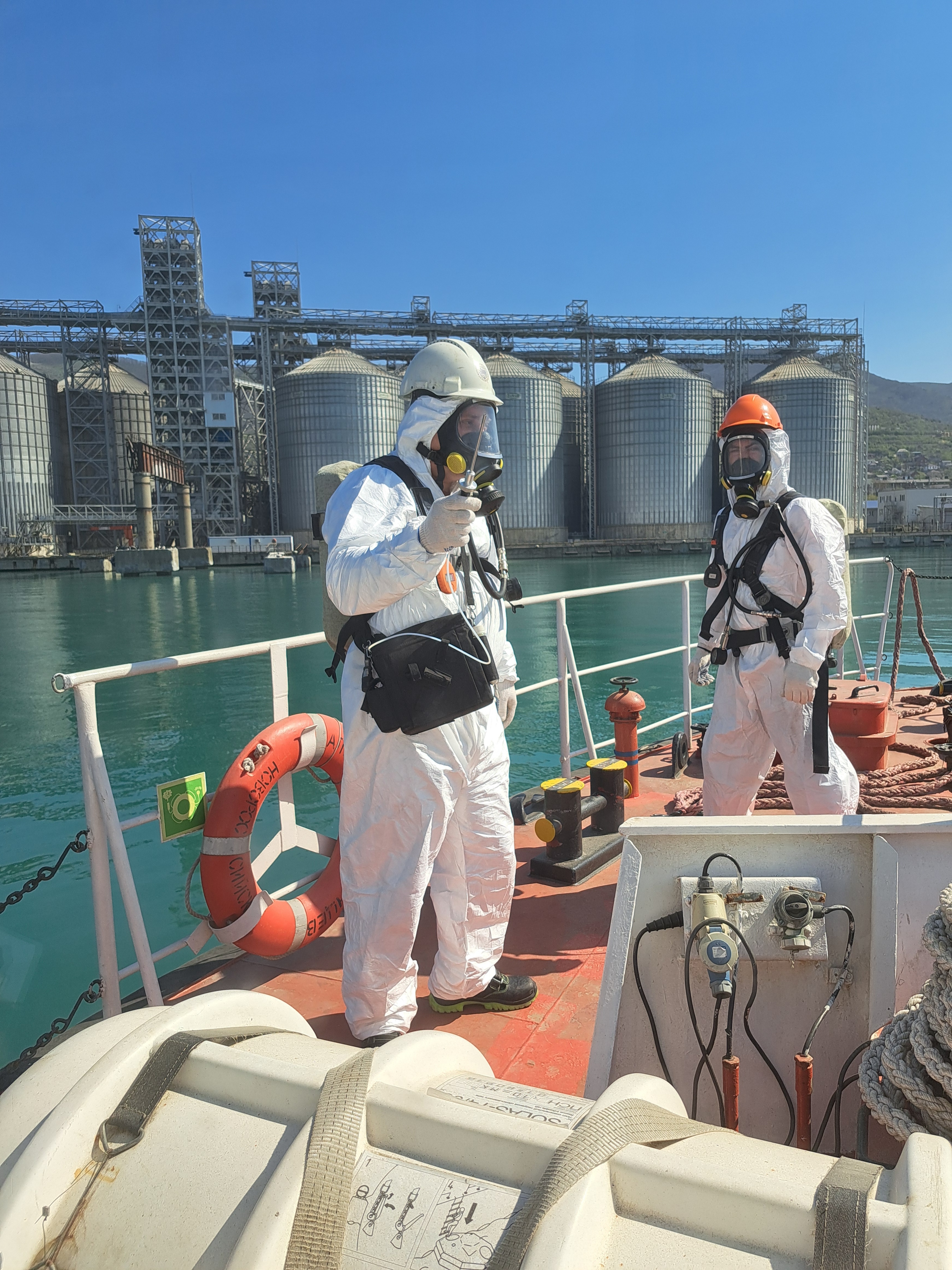 От Азово-Черноморского филиала ФГБУ «Морспасслужба» в учениях были задействованы дежурно-диспетчерская служба филиала, группа аттестованных спасателей, суда аварийного реагирования – спасательные катера-бонопостановщики «Максим Колосов» и «Александр Сизонцев» с оборудованием ЛРН на борту, катер-бонопостановщик «Нефтесборщик-1».