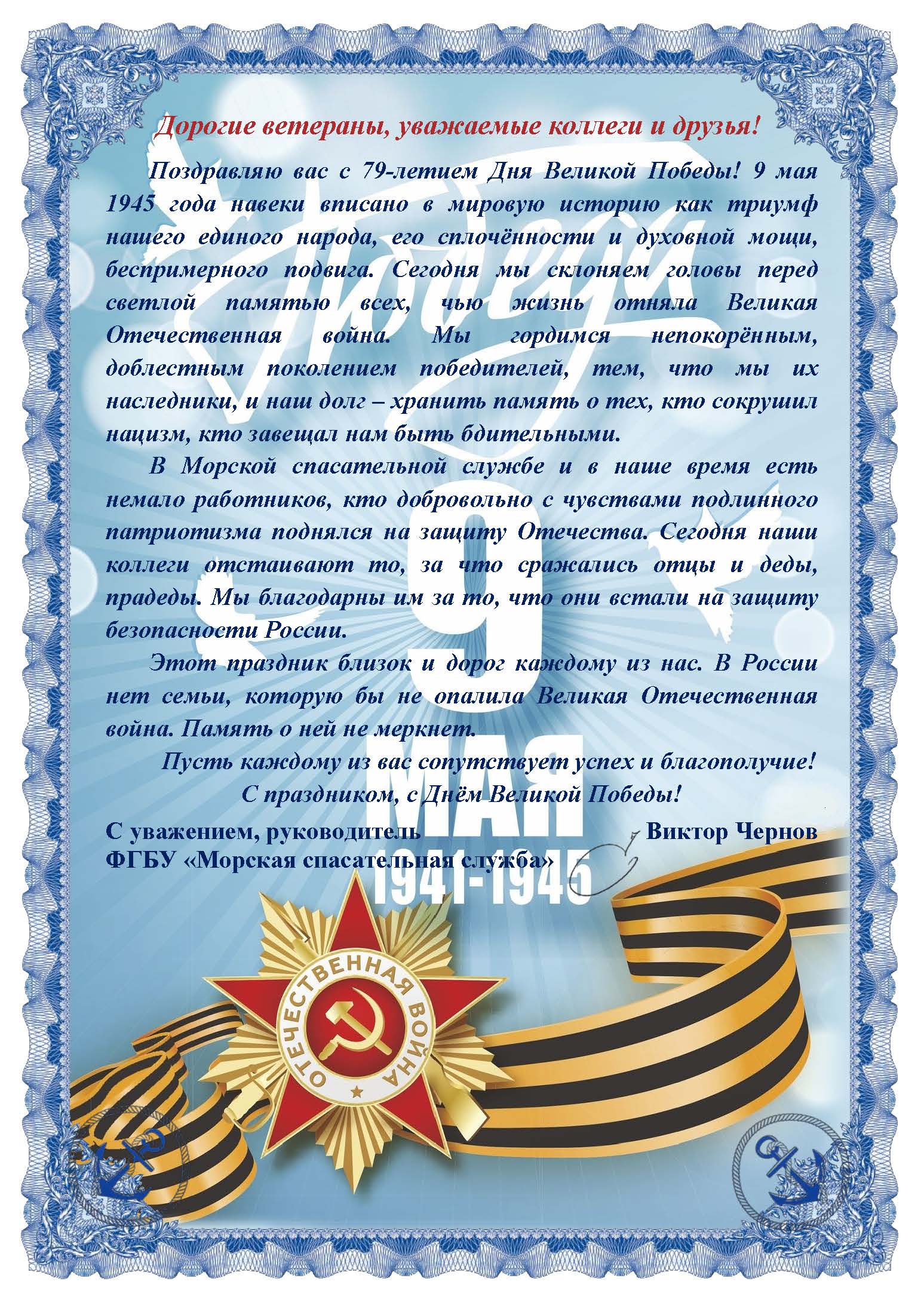 Поздравление руководителя Морспасслужбы Виктора Чернова коллективу с Днём Великой Победы