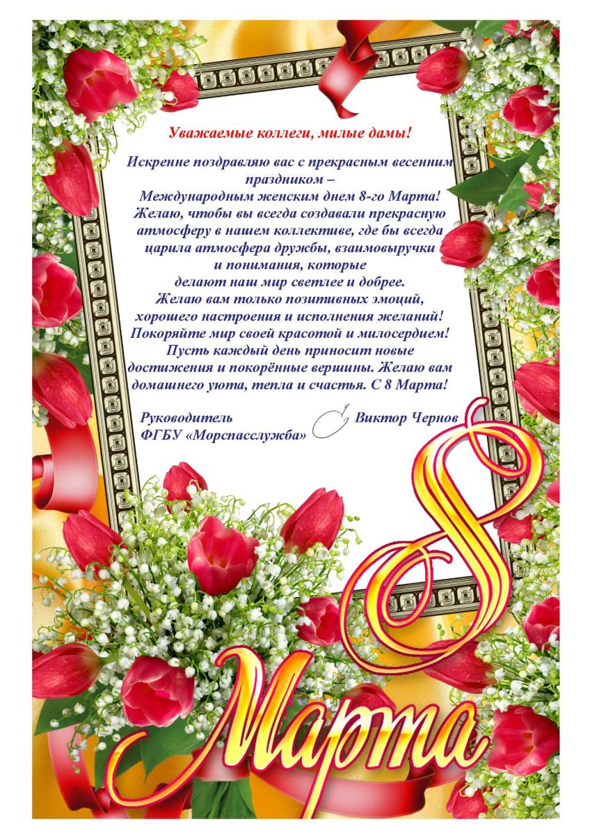 Поздравление женскому коллективу ФГБУ "Морспасслужба" от руководителя Виктора Ивановича Чернова