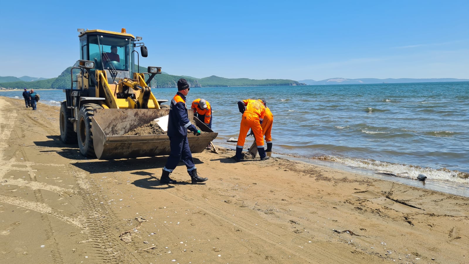 НАХОДКА (Приморский край). 21 мая аварийно-спасательная партия Приморского филиала ФГБУ «Морспасслужба» во взаимодействии с МЧС России по Приморскому краю и специалистами муниципальных органов региона приняла участие в устранении последствий загрязнения мазутом береговой черты городского пляжа «Волна» в городе Находка. Предотвращена угроза надвигающейся экологической опасности.