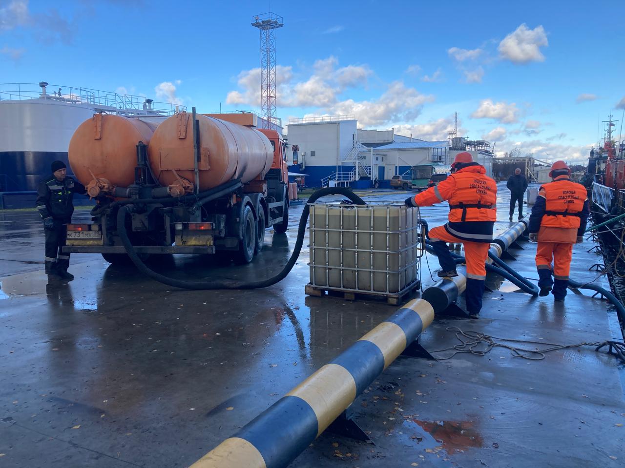 В акватории морского порта Калининград завершились тренировочные учения по ликвидации разлива нефтепродуктов