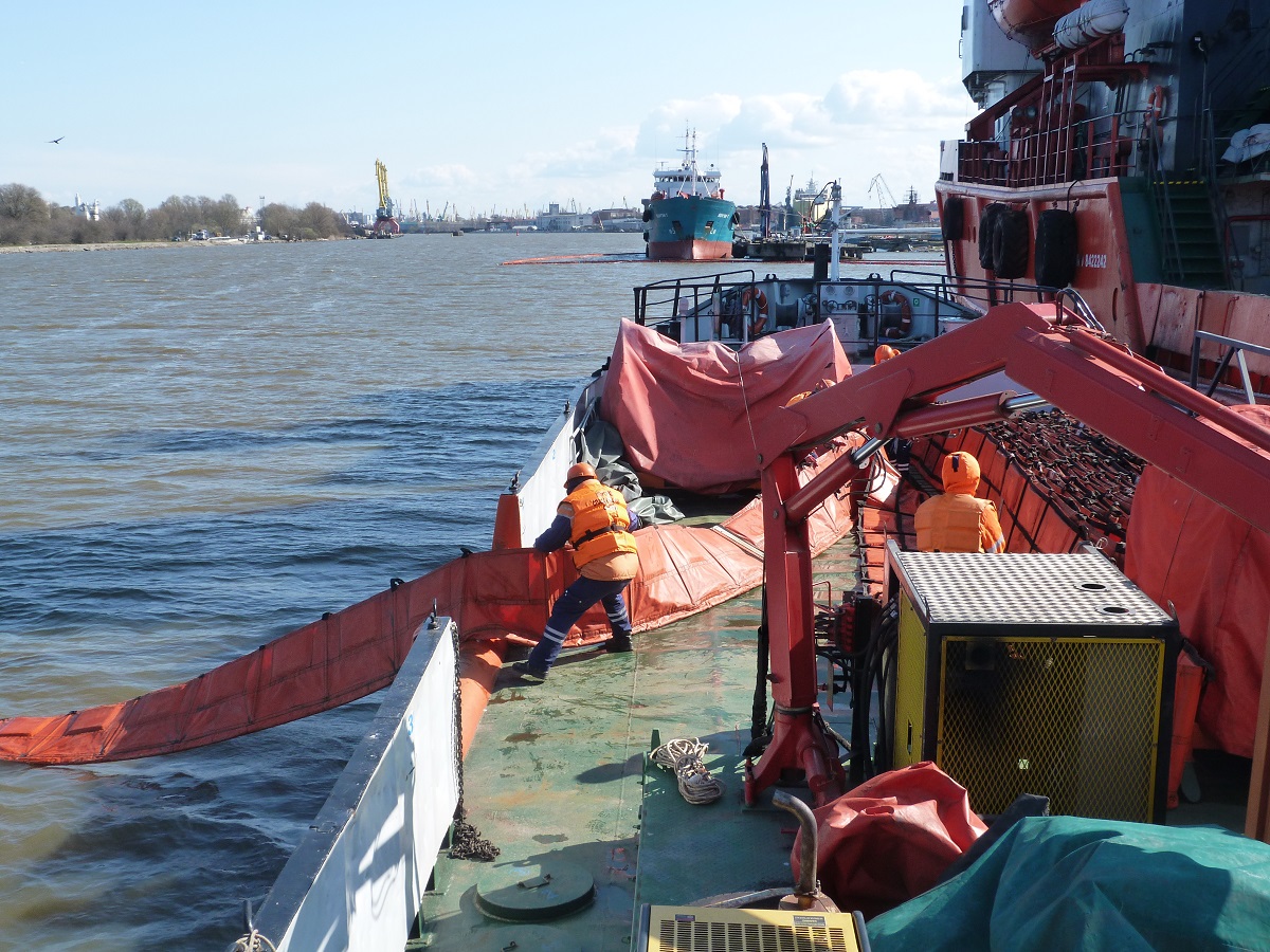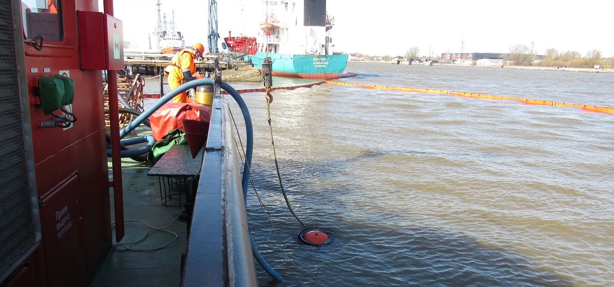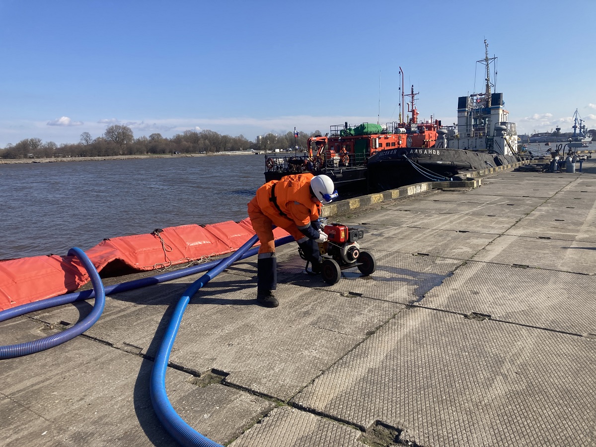 В Калининградском порту прошло тренировочное учение по ликвидации разлива нефтепродуктов