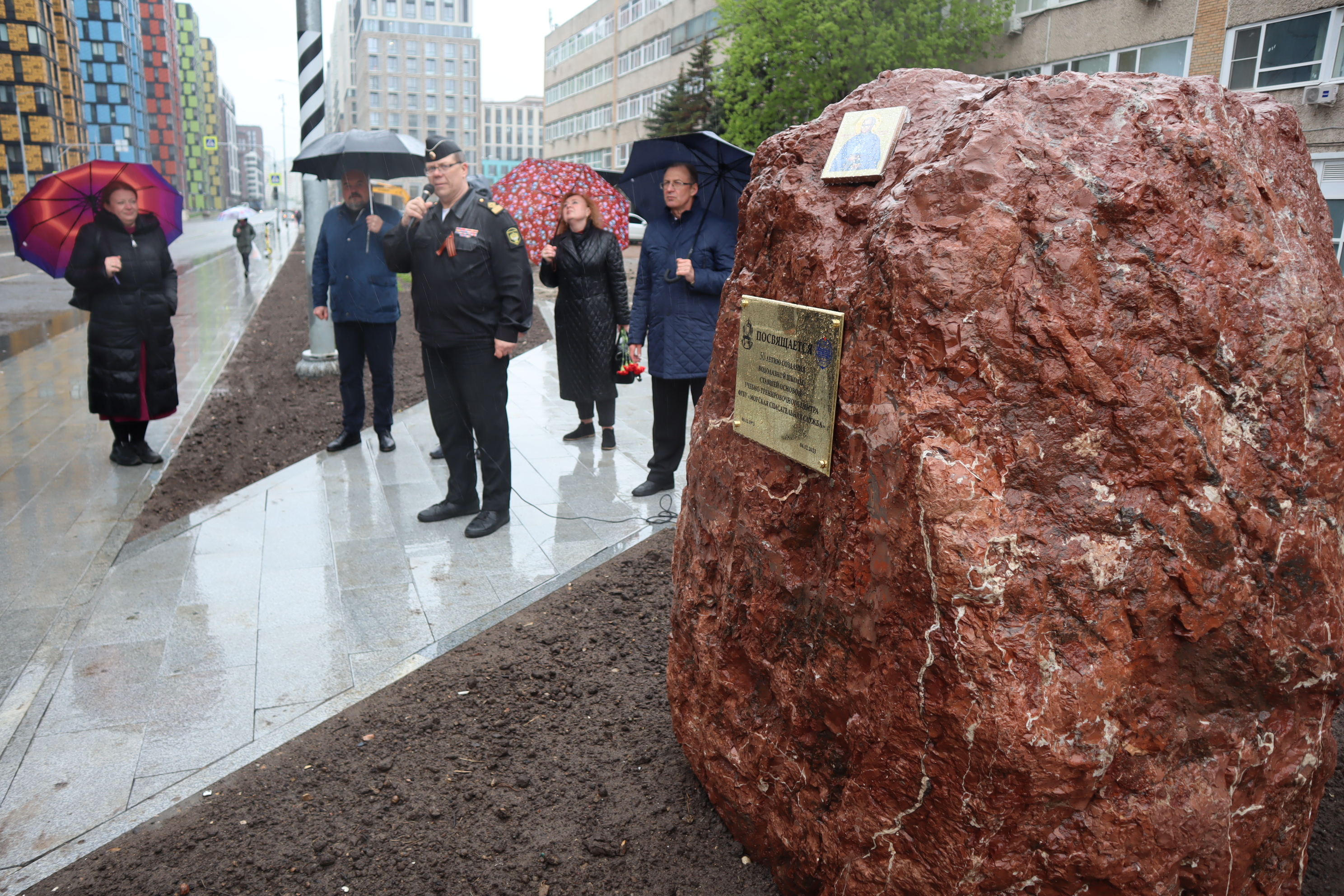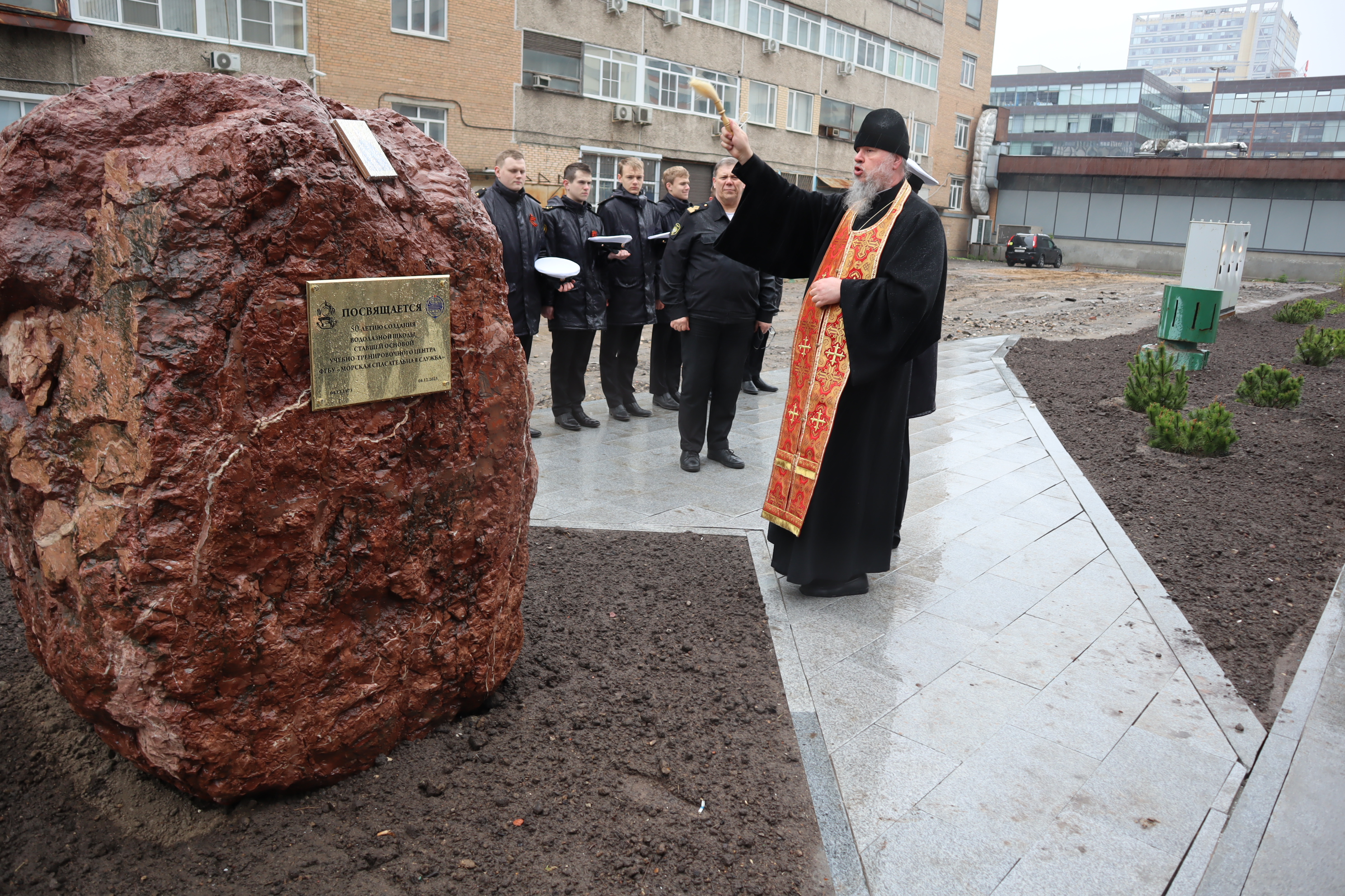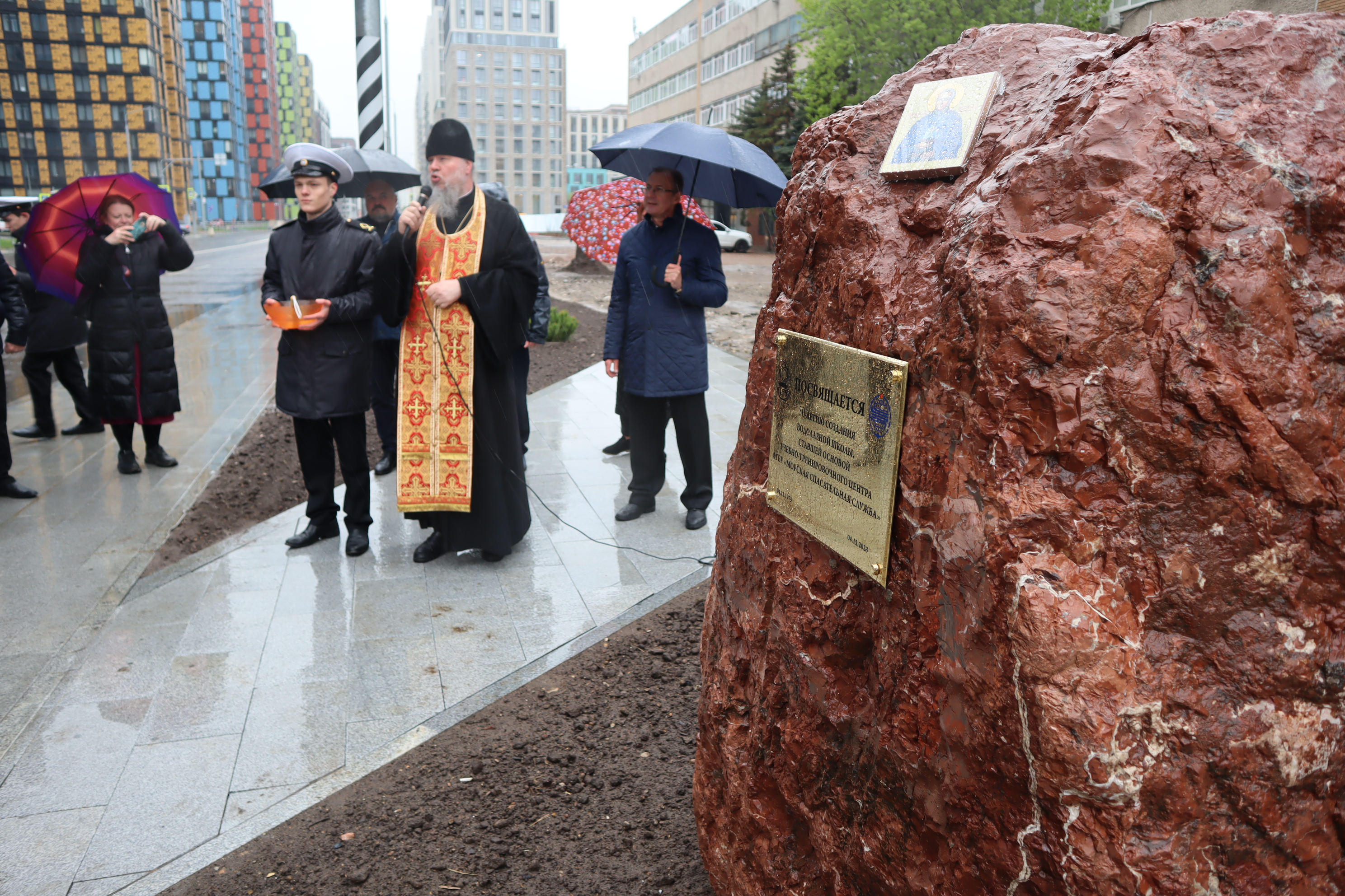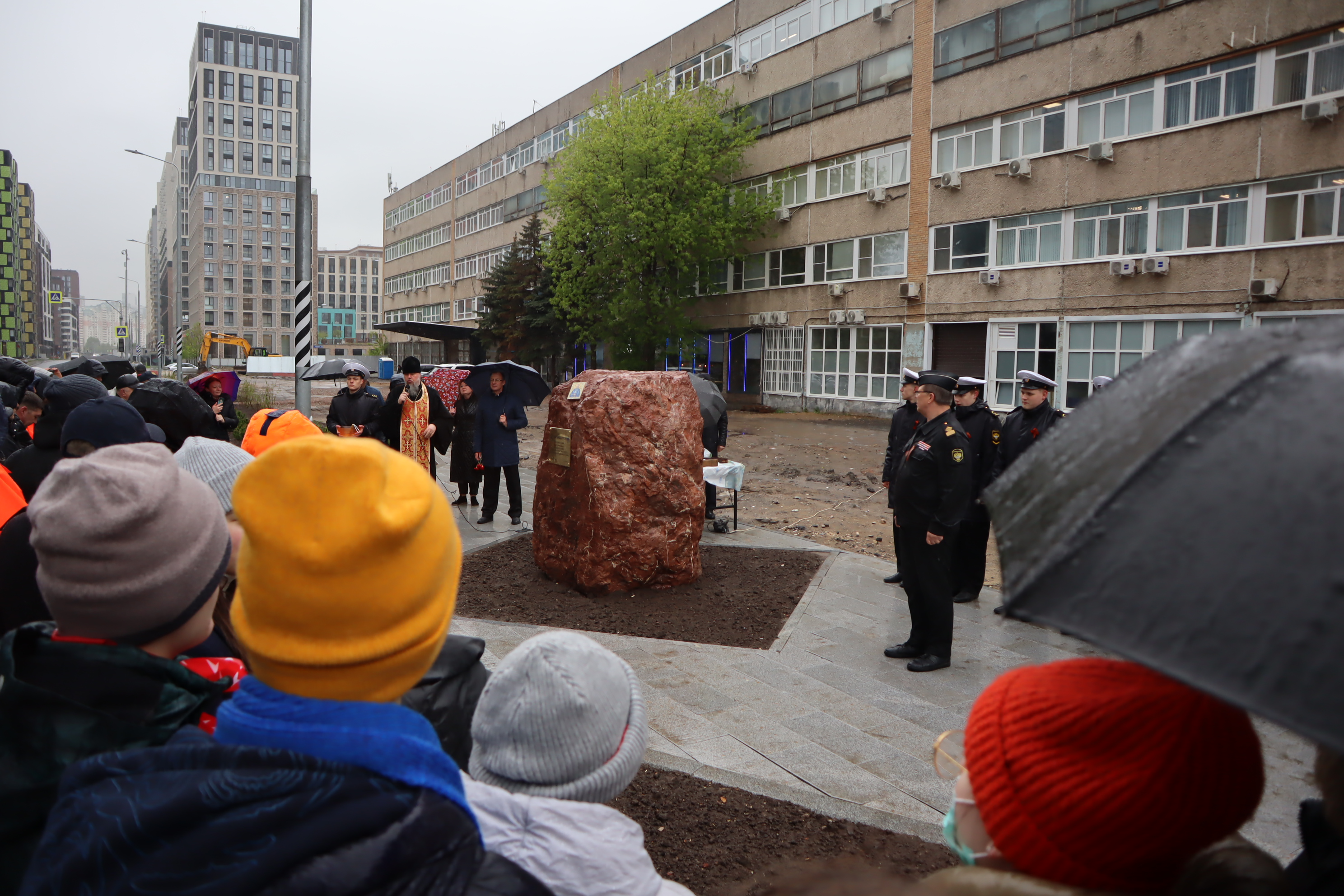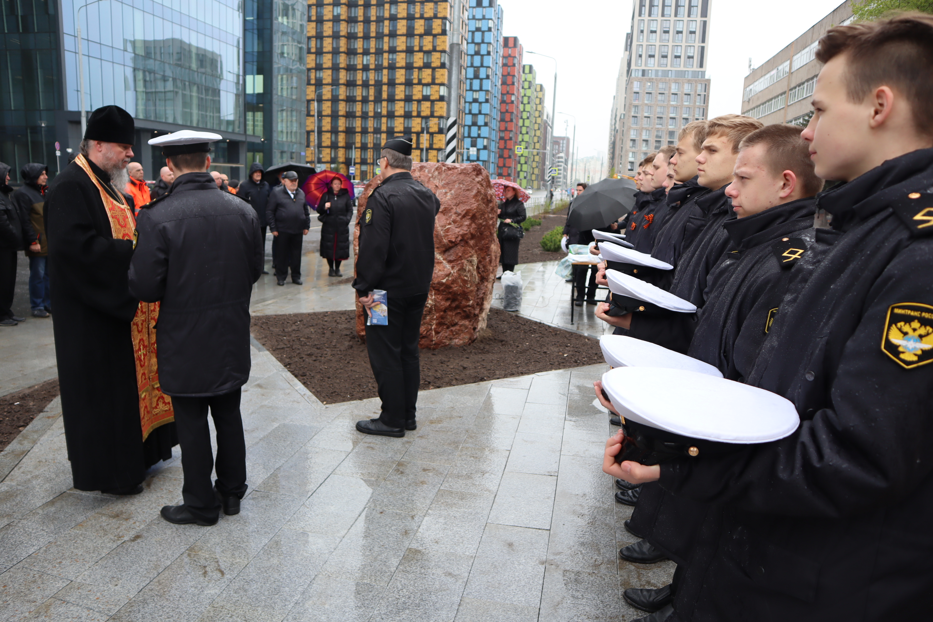 В торжественном мероприятии на открытии малой архитектурной формы «Памятный камень» приняли участие исполняющий обязанности руководителя ФГБУ «Морская спасательная служба» Олег Григорьев, заместитель руководителя Игорь Мищенко, преподавательский состав Учебно-тренировочного центра и работники водолазной службы учреждения, представитель Главы управы района Даниловский города Москвы-начальник организационного отдела Марина Жгут, Председатель Общероссийского движения поддержки флота капитан 1 ранга запаса Владимир Мальцев, Настоятель Храма Святого праведного воина адмирала Феодора Ушакова игумен отец Дамиан, директор колледжа Академии водного транспорта РУТ (МИИТ) им. Министра речного флота Л.В. Багрова Владимир Иванов и курсанты первого курса, группа общероссийского общественно-государственного движения детей и молодёжи «Движение Первых», специалисты водолазной службы Участка подводно-технических работ ГУП «Мосводосток», и многие другие почётные гости.
