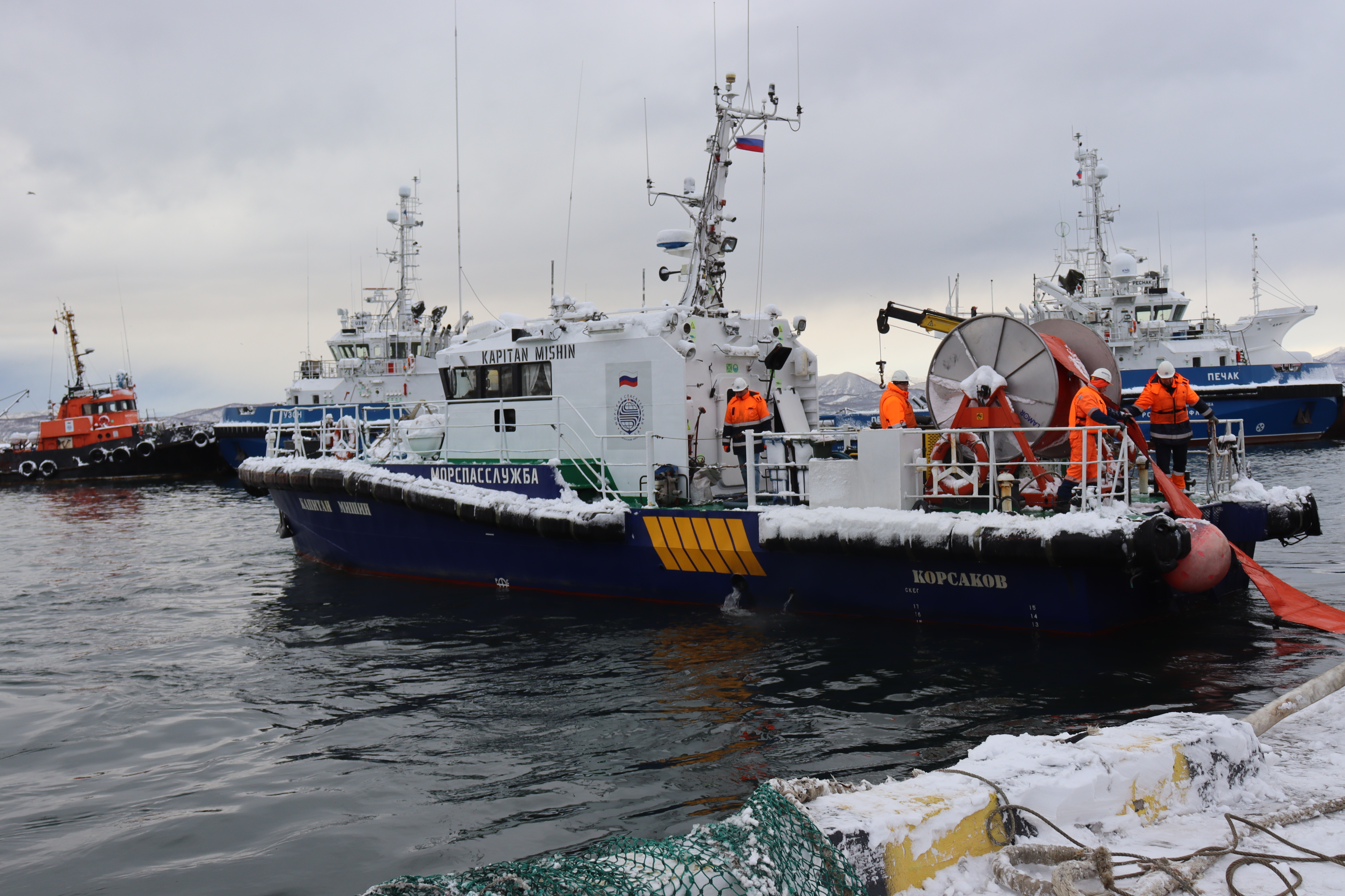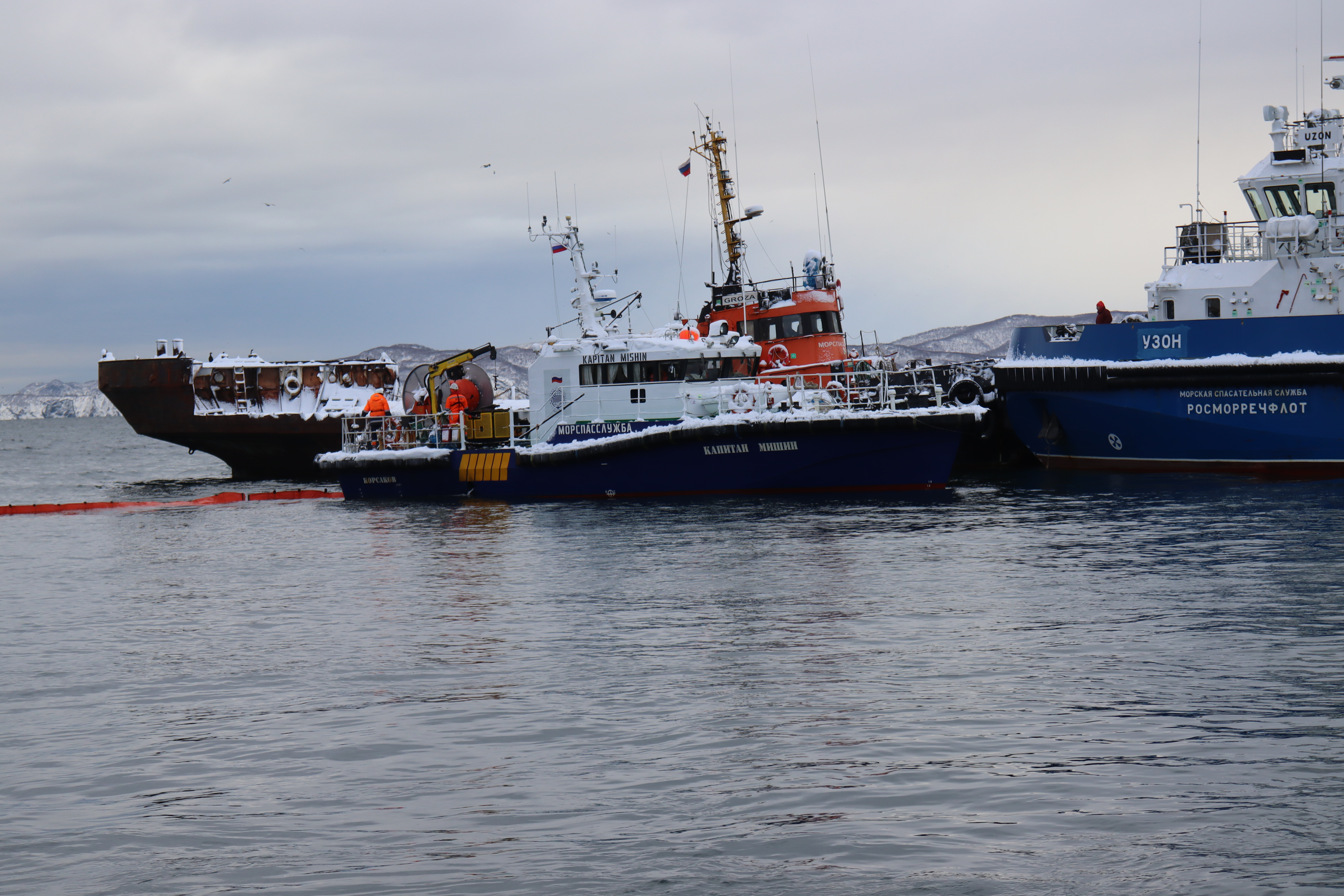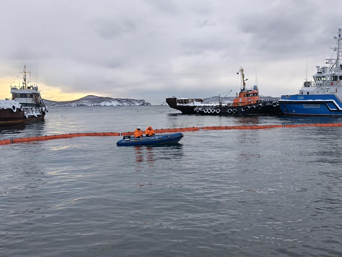 ПЕТРОПАВЛОВСК-КАМЧАТСКИЙ. На акватории морского порта Петропавловск-Камчатский у мыса Сигнальный 19 ноября 2025 проведено совместное тренировочное учение перед утверждением плана ЛАРН при эксплуатации нефтеналивных судов.