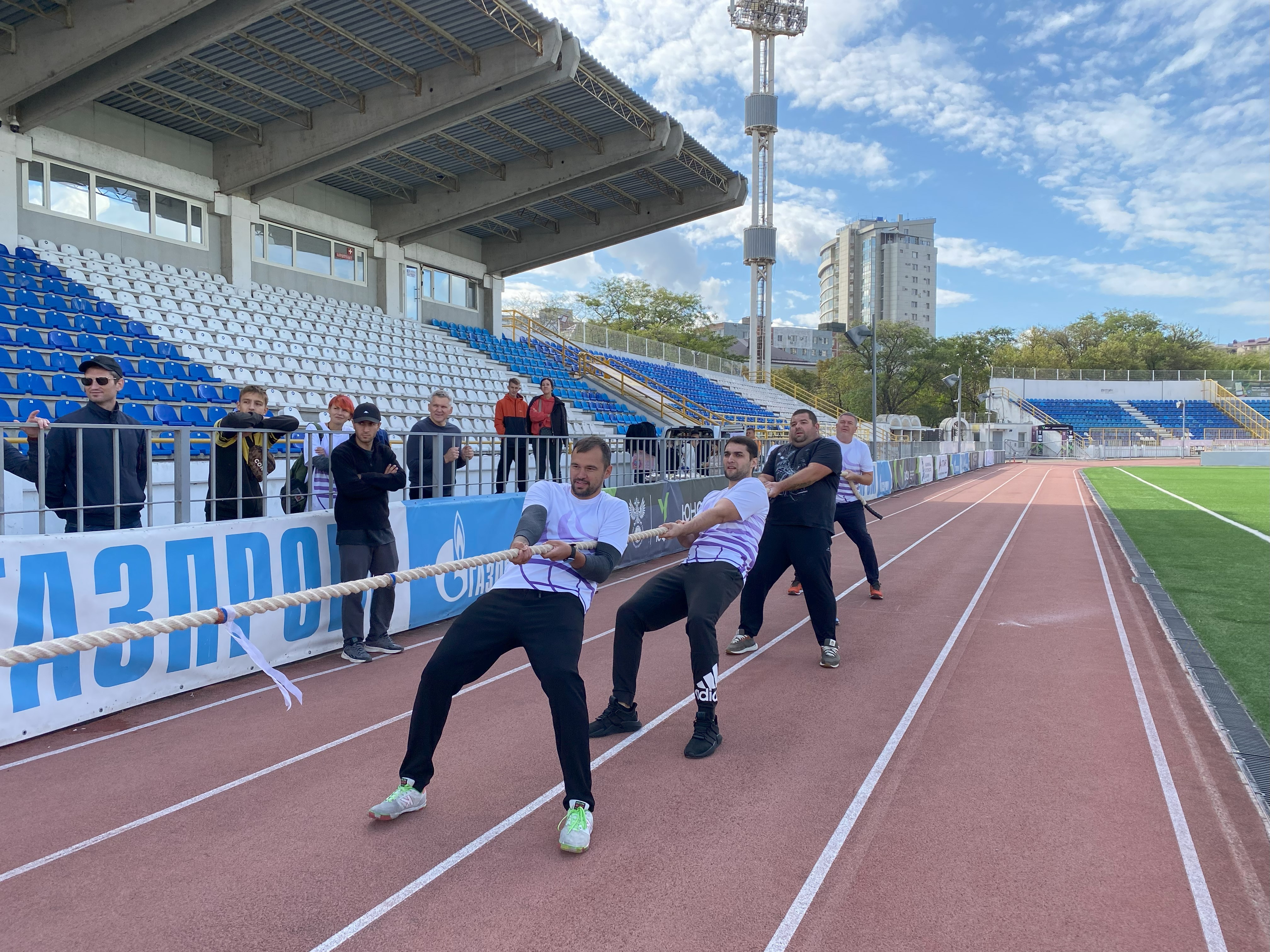 Перетягивание каната. До этого последнего вида соревнований на призовые места претендовали три команды. Этот вид решал распределение медалей Юбилейной спартакиады. Участники продемонстрировали всю мощь и стремление к победе. Победителем, не проиграв ни одной схватки, стала команда ПТО, уверенное второе место завоевала команда АСП и в упорной борьбе третье место заслужила команда Тех.отдела.Награждение. 28 сентября состоялась церемония награждения и закрытия Юбилейной спартакиады на стадионе «Центральный» в Новороссийске. По итогам всех видов соревнований пятый год подряд первое место заняла команда ПТО, второе место у команды АСП, третье место завоевала команда Тех.отдела. Директор Азово-Черноморского филиала ФГБУ «Морспасслужба» Дмитрий Бибиков наградил победителей и призеров Спартакиады памятными кубками, медалями, грамотами и сувенирной продукцией.